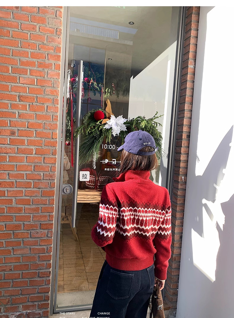 费尔岛风复古提花100纯羊毛衫女圆领加厚款羊毛毛衣套头针织打底