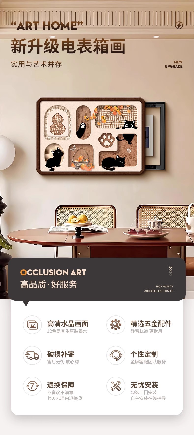 磁吸电表箱装饰画中古风免打孔电闸箱遮挡挂画电盒子总闸开关遮丑