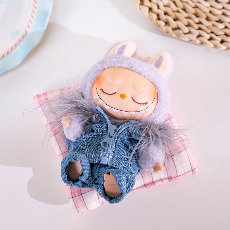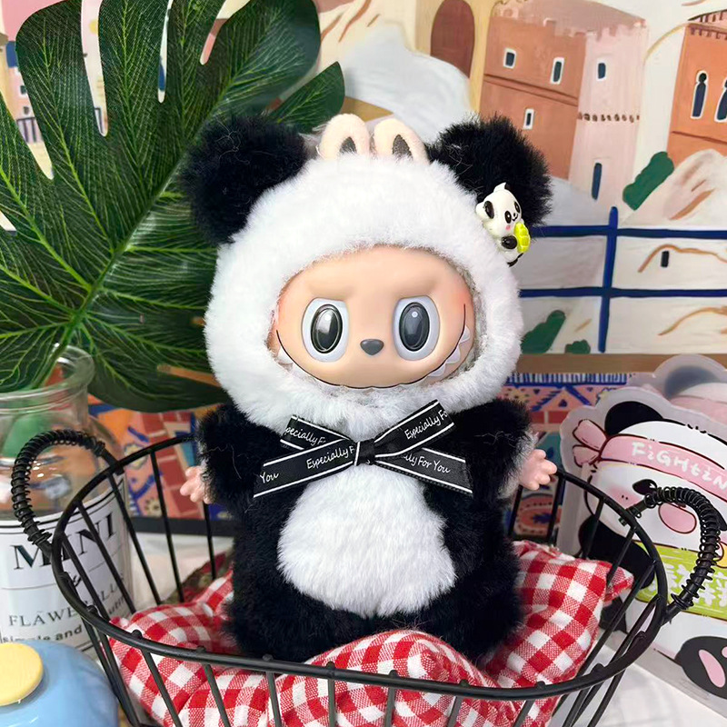 仅衣服熊猫毛绒娃衣适用于17cm拉布布一二三代Labubu换装工厂批发