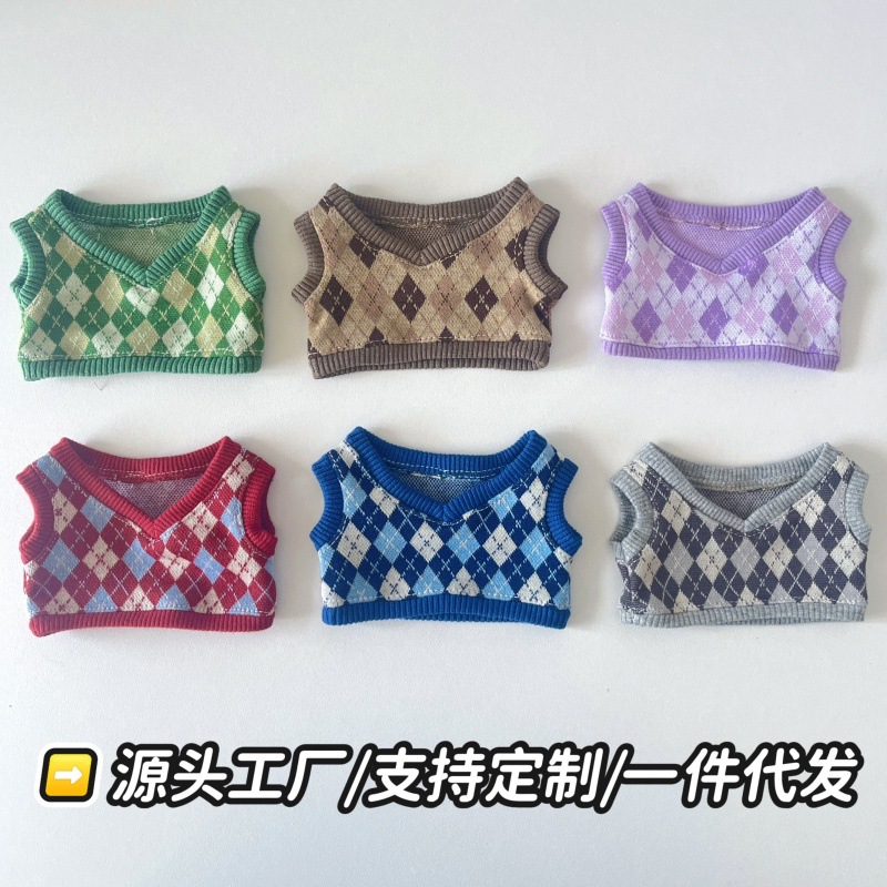 10cm20cm綿人形ベビー服英国風菱形ベスト1、2、3世代ラブブ服