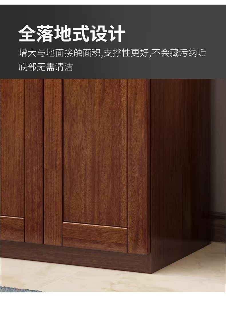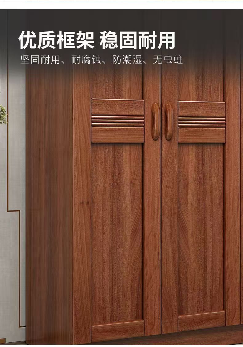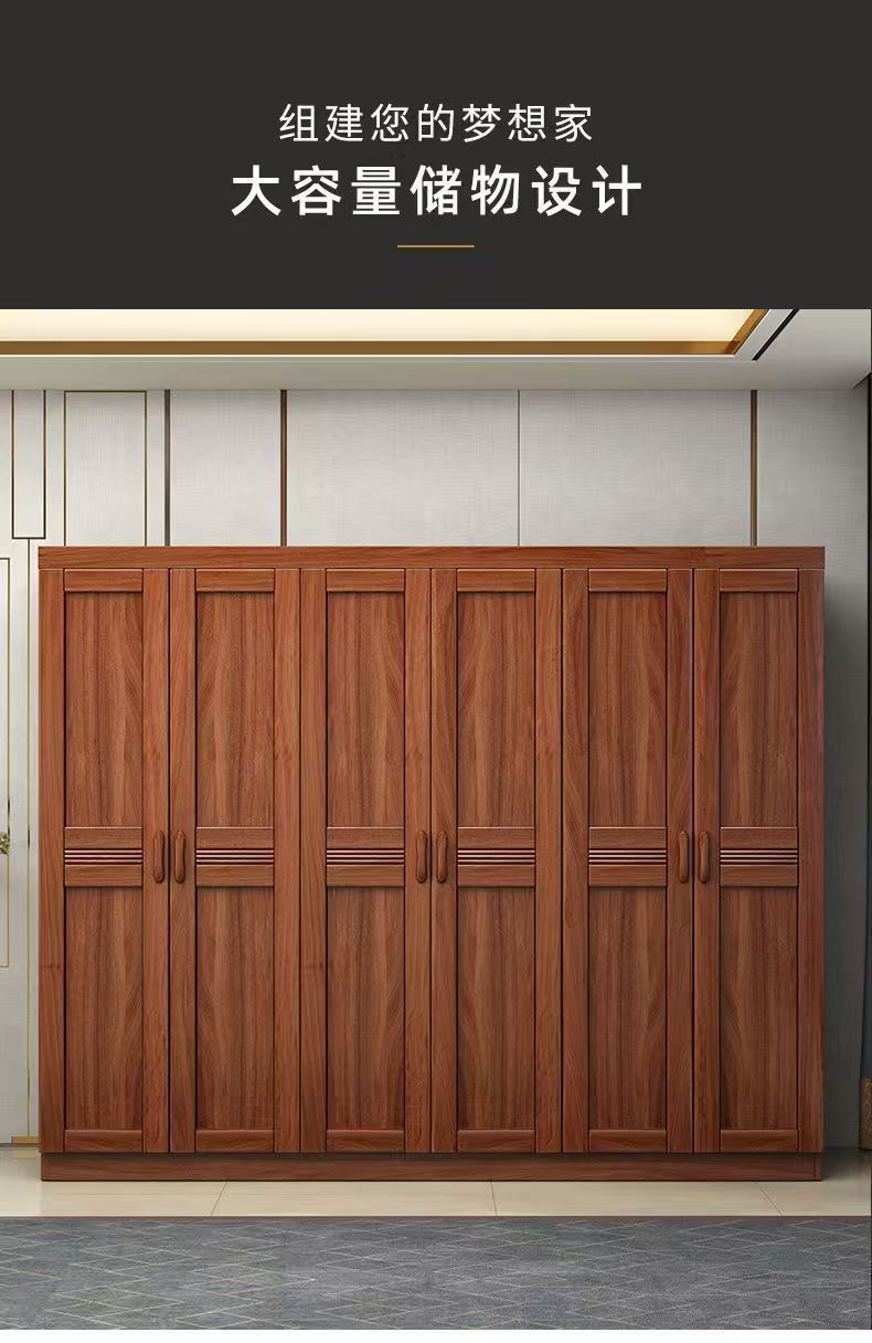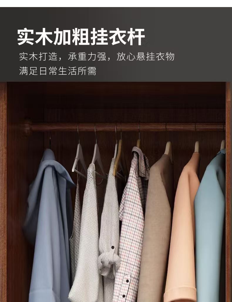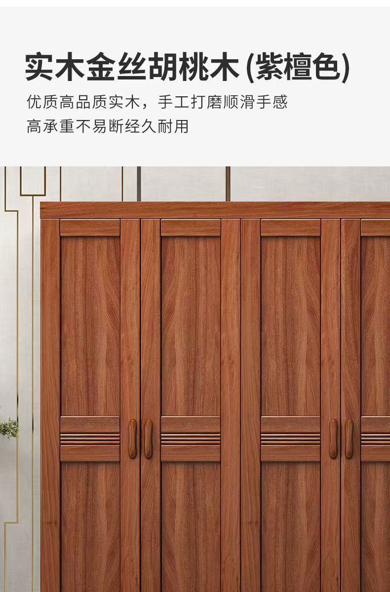 新中式胡桃色实木框衣柜卧室储物柜儿童衣物收纳柜简约衣橱大容量