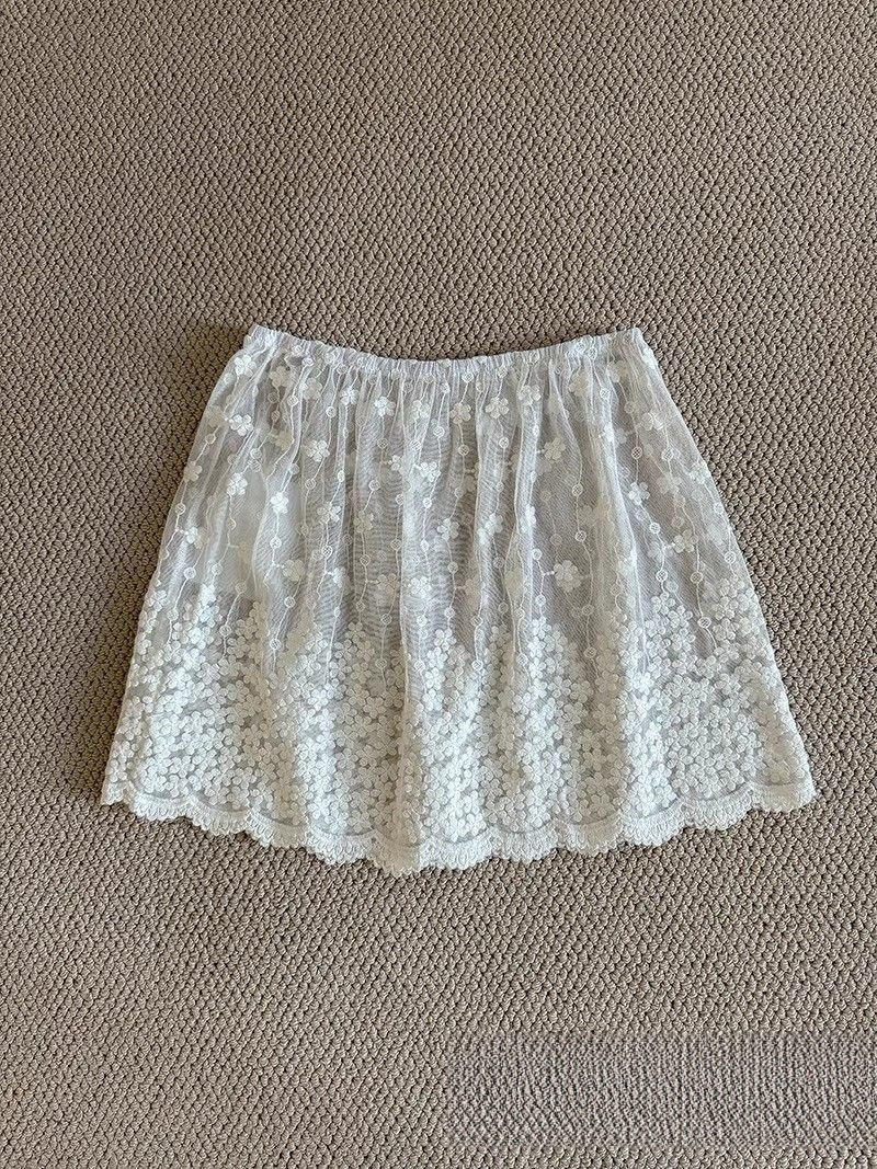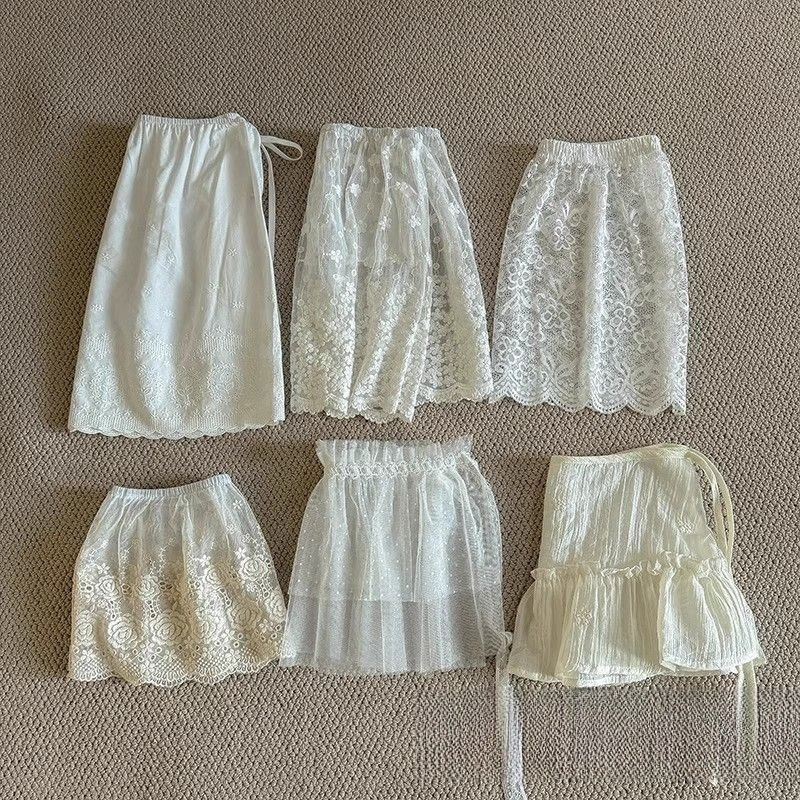 2025年夏の新作レイヤードレースカーテンレディース秋冬マッチングスカートカーテンファッショナブルな白いレーススカートトレンディ