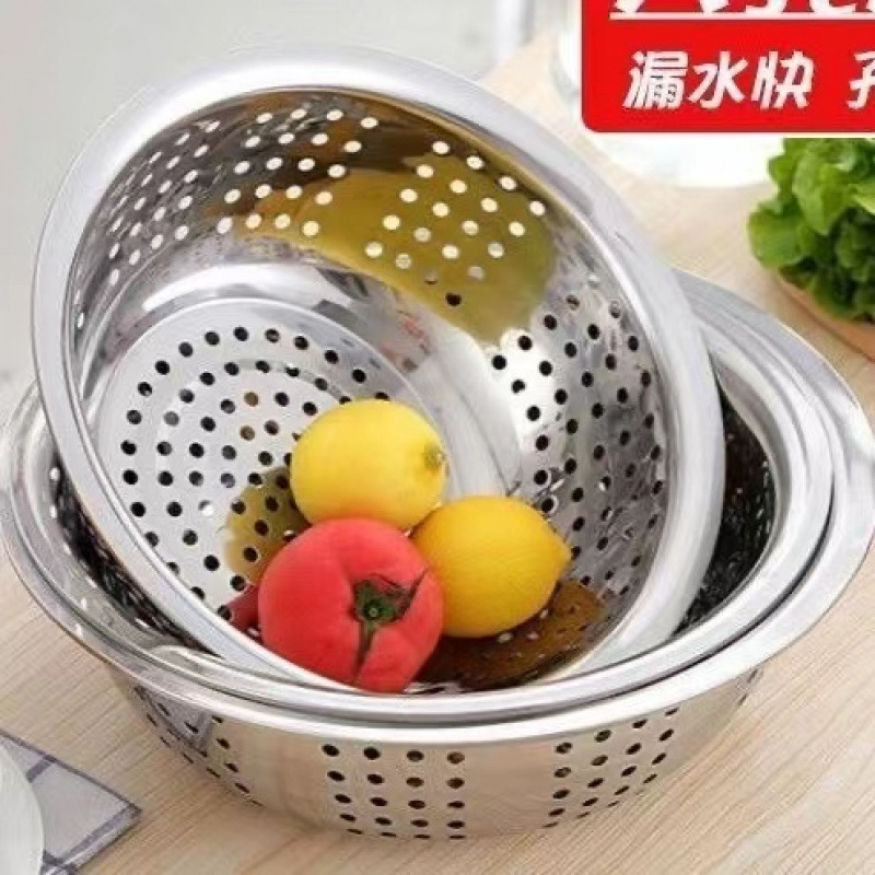 厚みのある食品グレードのステンレス鋼の洗面器、業務用野菜洗い用の特大洗面器、大穴の水フィルター洗面器、排水洗面器