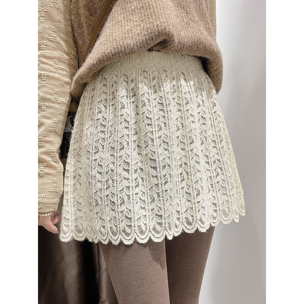 蕾丝小屁帘女下摆秋冬季卫衣毛衣遮屁股打底叠穿内搭花边裙罩白色