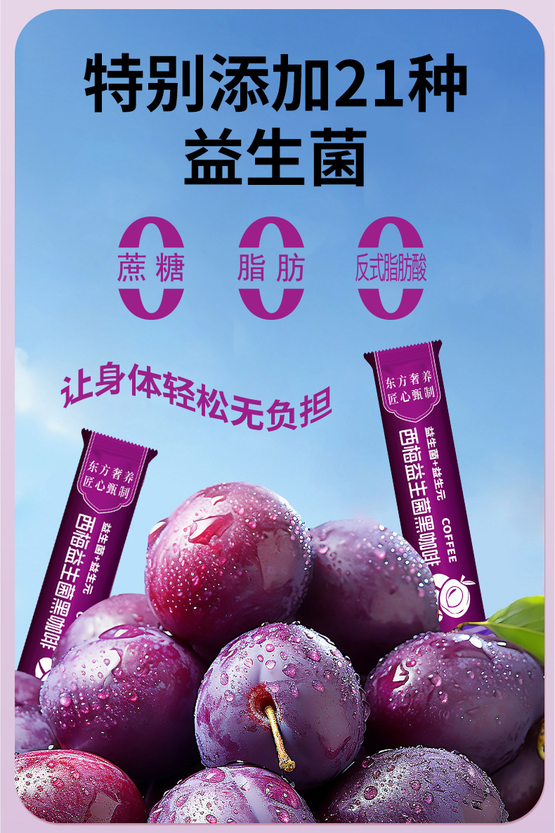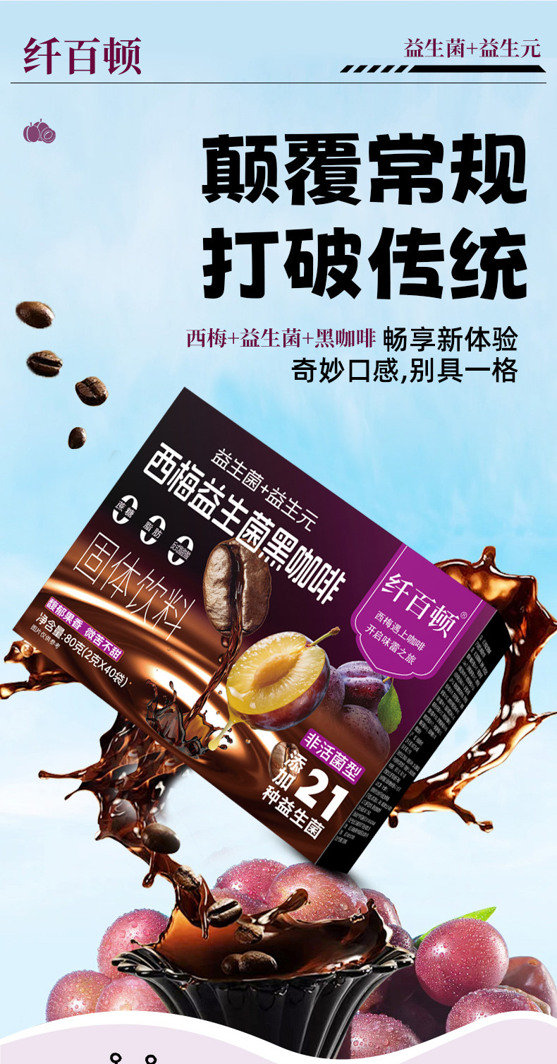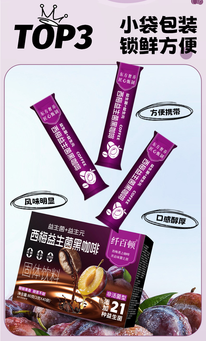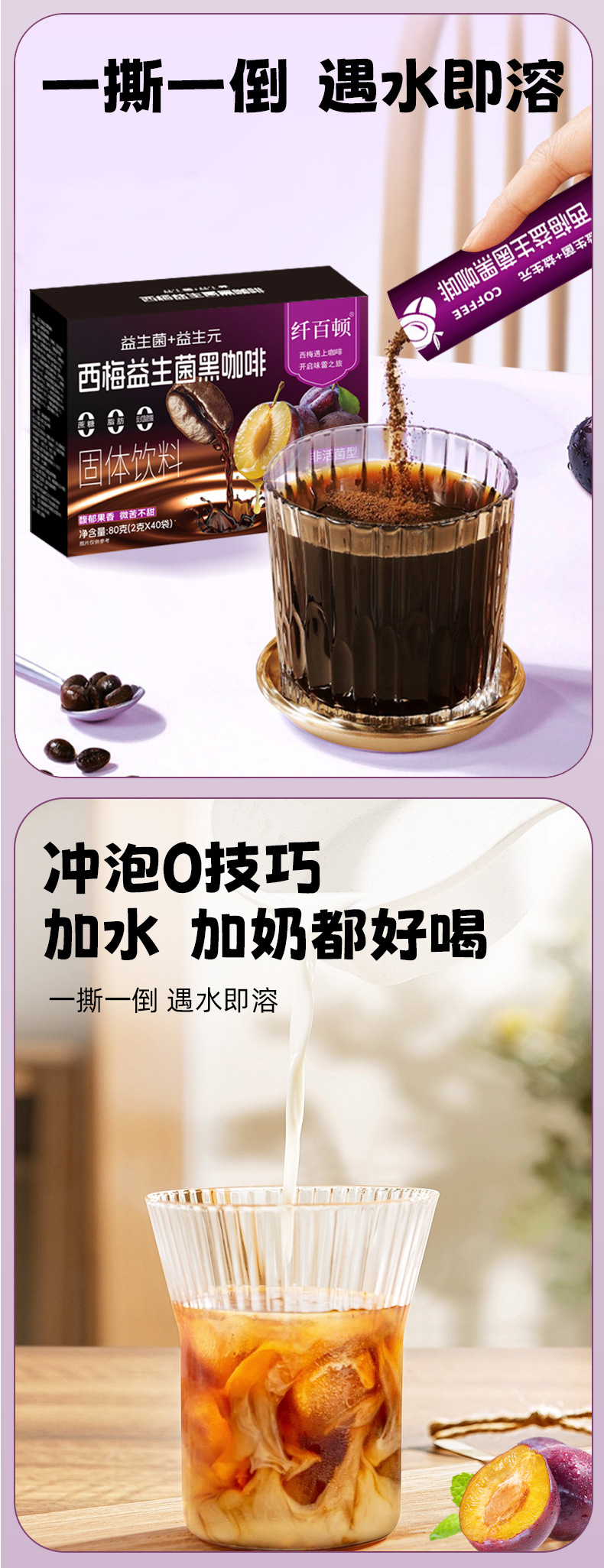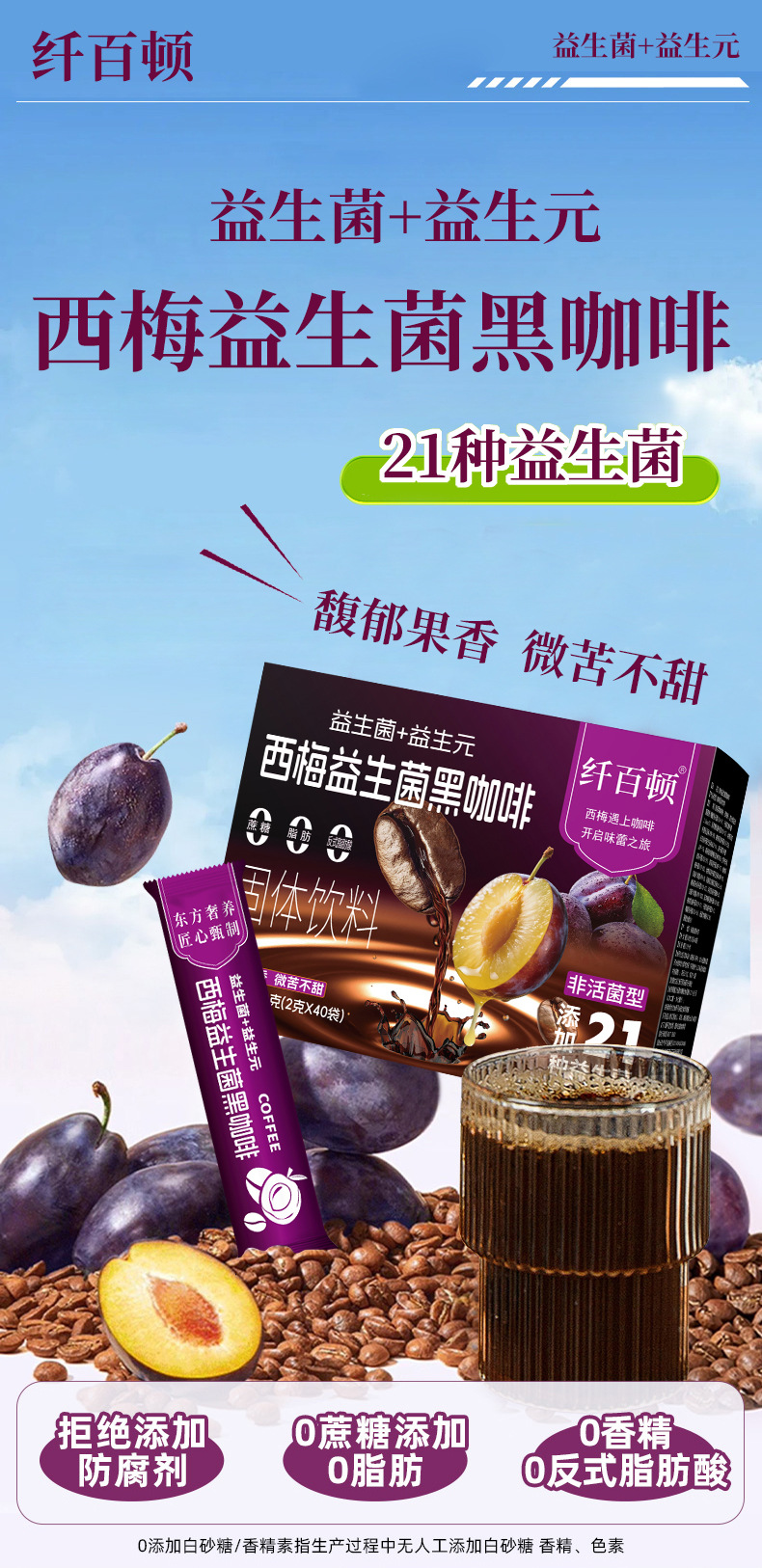 西梅益生菌黑咖啡40袋0糖0脂益生元21种益生菌美式黑咖啡现货代发