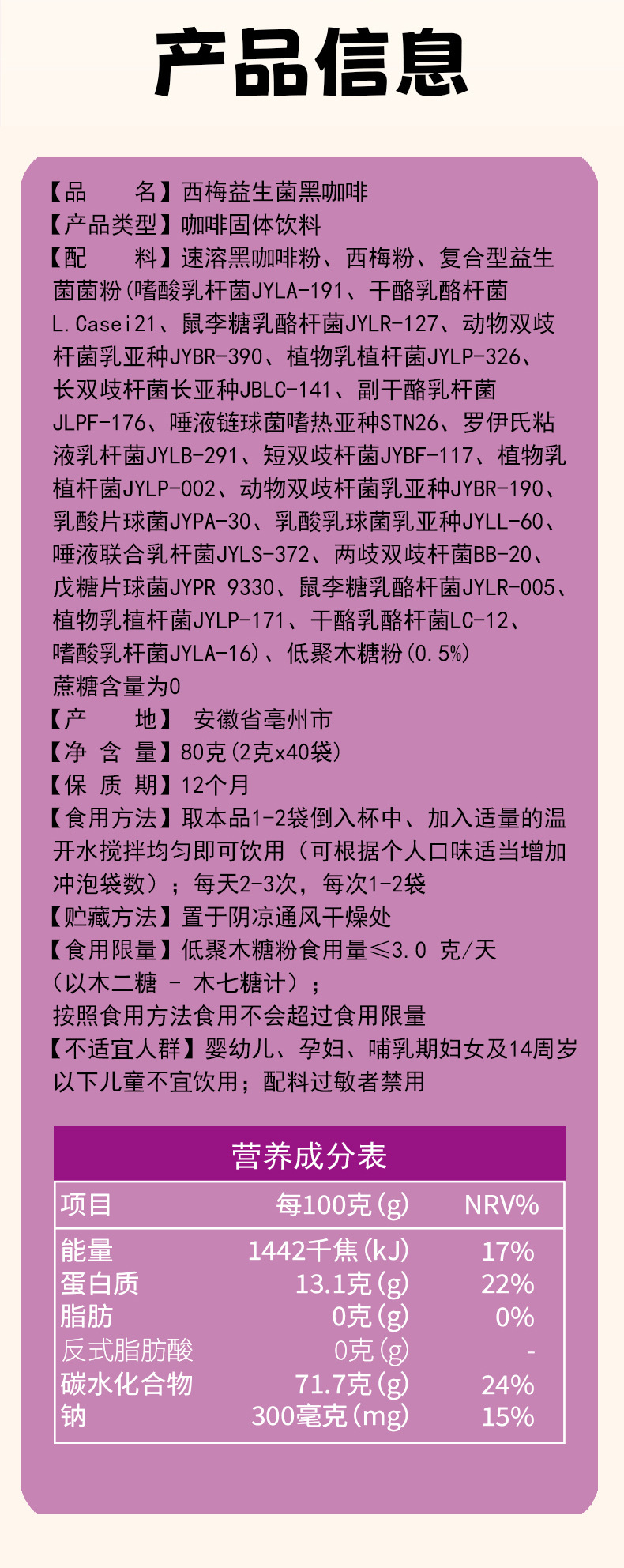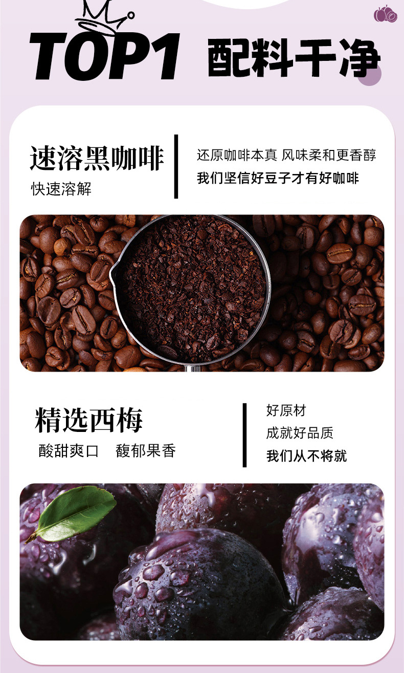 西梅益生菌黑咖啡80g西梅黑咖啡21种益生菌益生元0蔗糖0脂肪现货