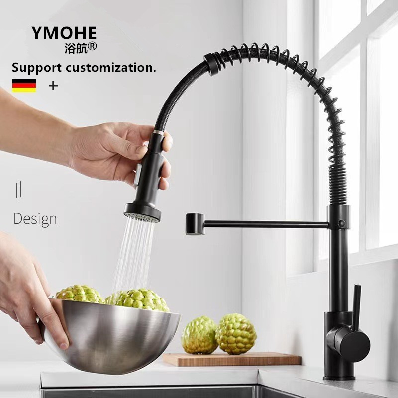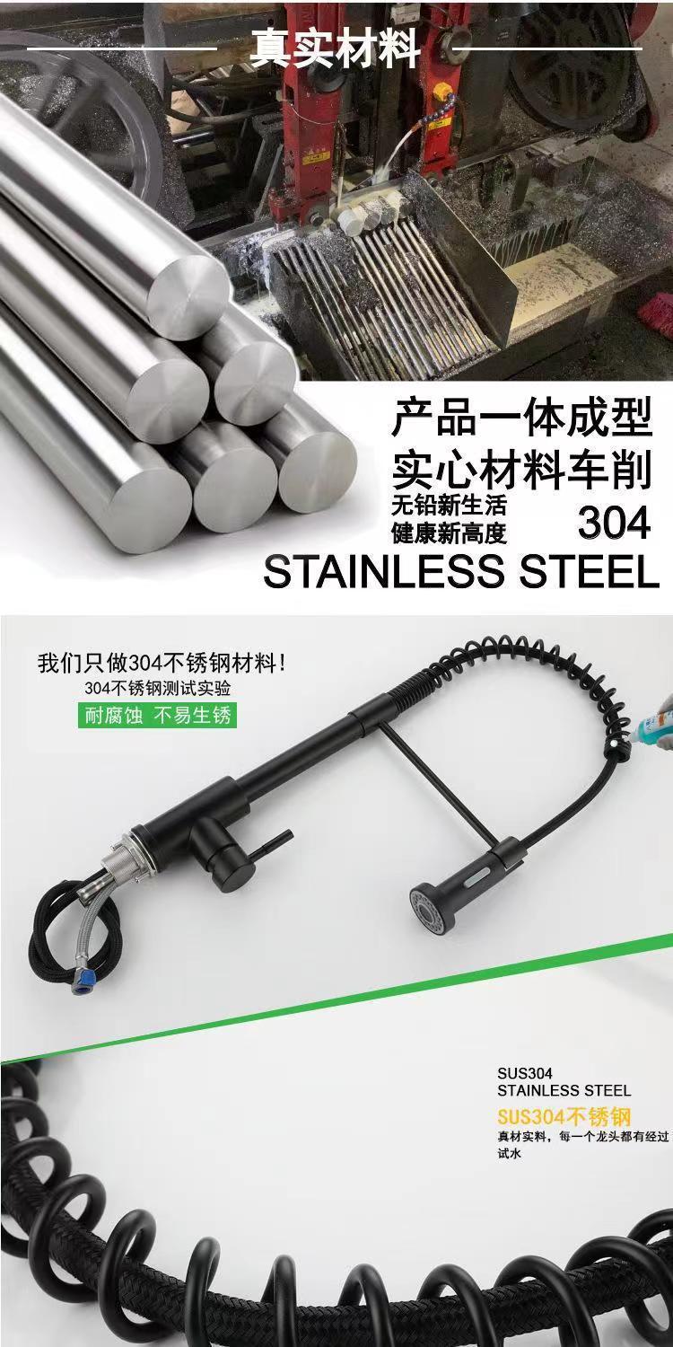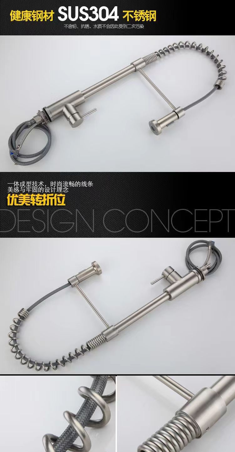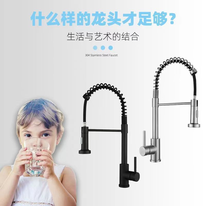 跨境不锈钢弹簧龙头万向厨房洗菜盆抽拉冷热龙头洗碗池水槽水龙头