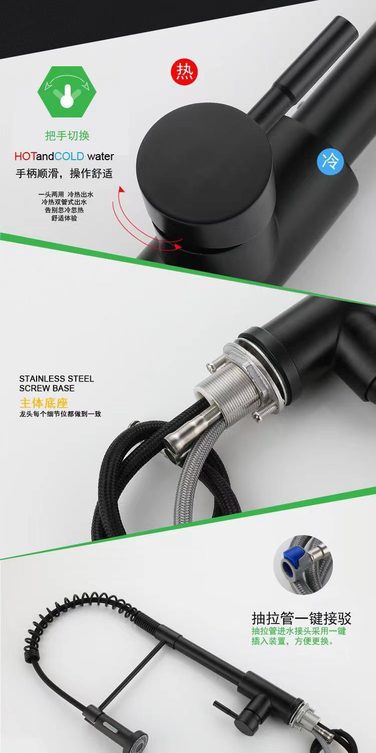 跨境不锈钢抽拉式厨房水龙头水槽洗菜盆可旋转美式弹簧冷热水龙头