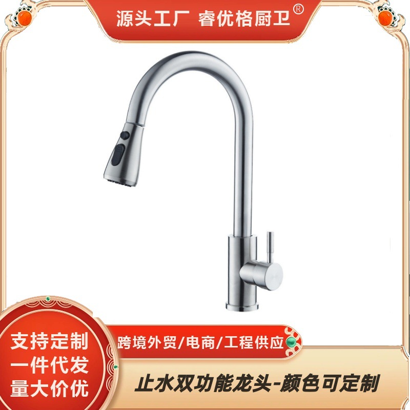 クロスボーダー厨房冷熱スプリング引き式蛇口ステンレス底板付き水槽浄水二重用単孔卸売り