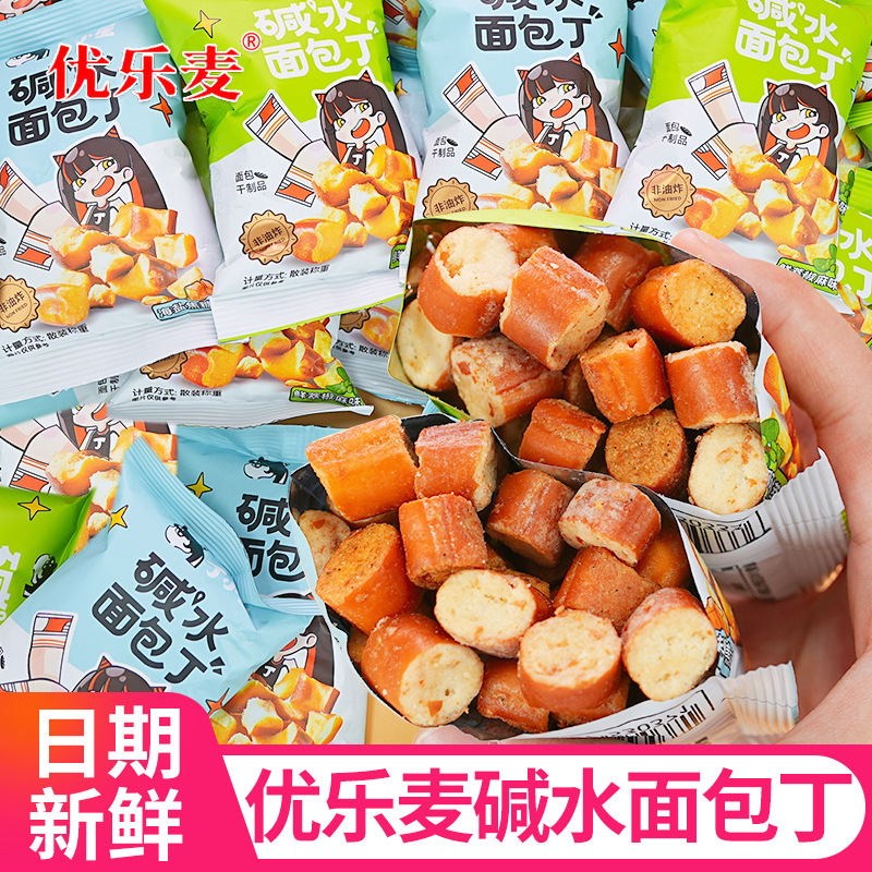 优乐麦碱水面包丁海盐焦糖面包碎袋装休闲追剧解馋零食品小吃批发