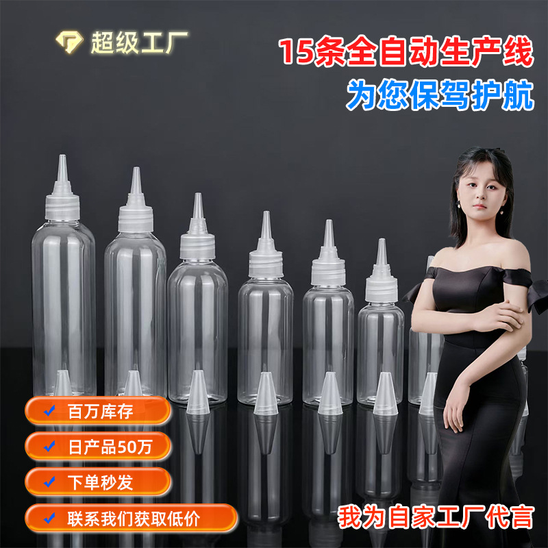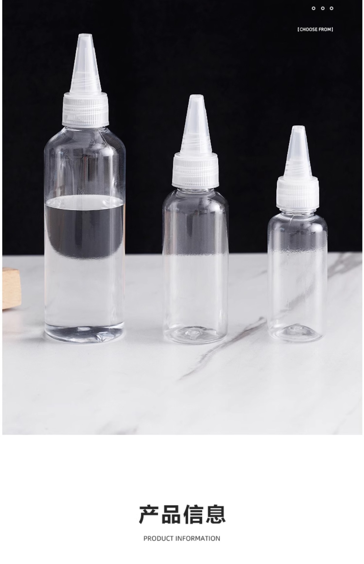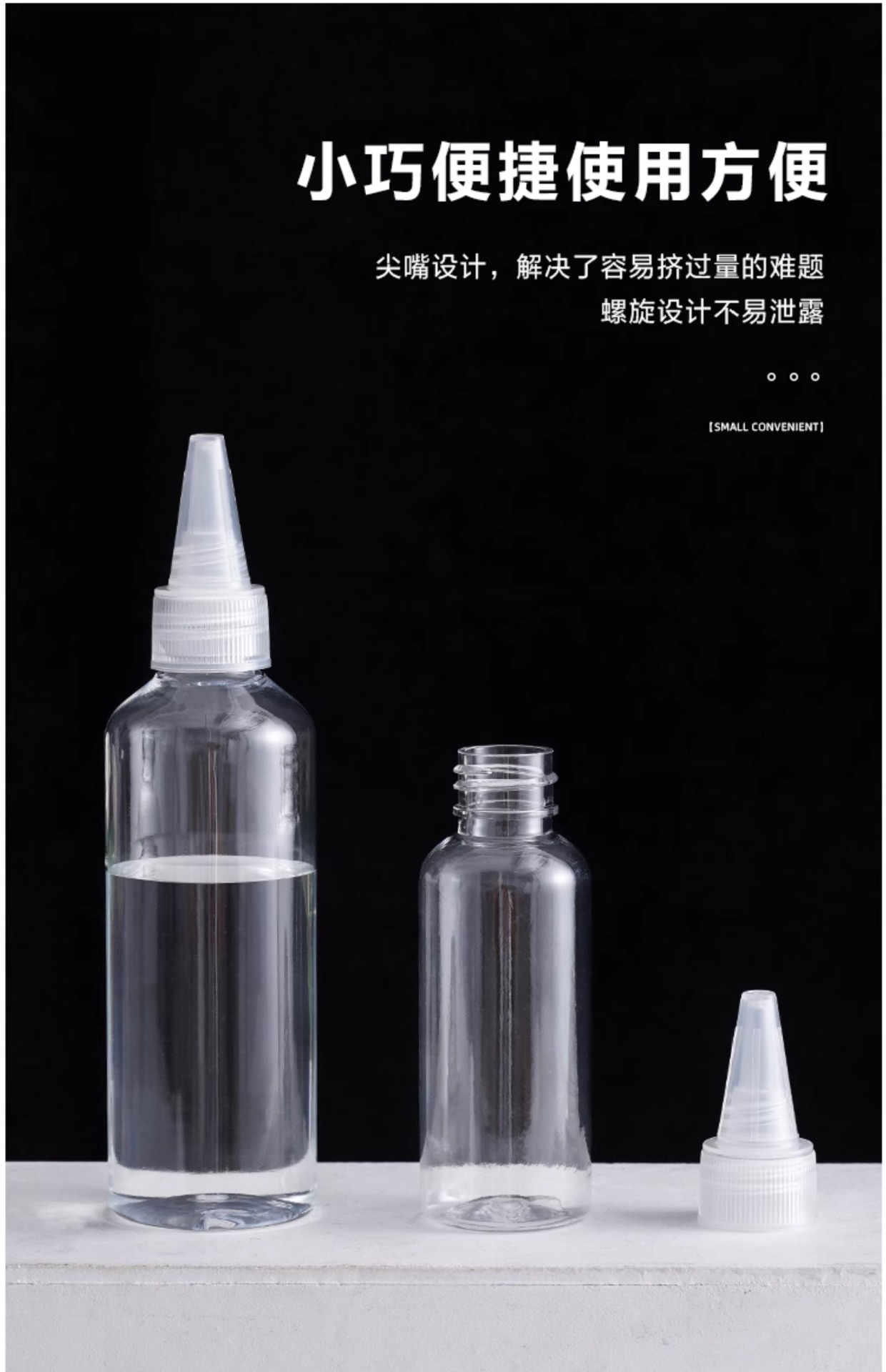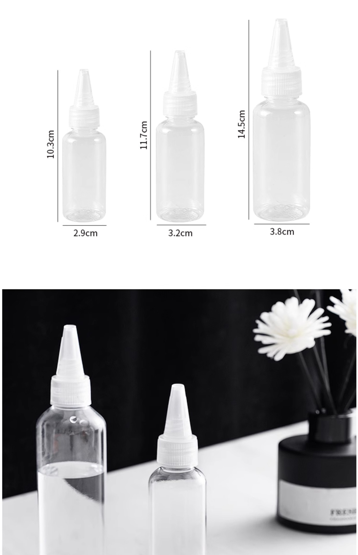 现货透明尖嘴瓶100毫升200毫升多型号液体分装调色颜料瓶
