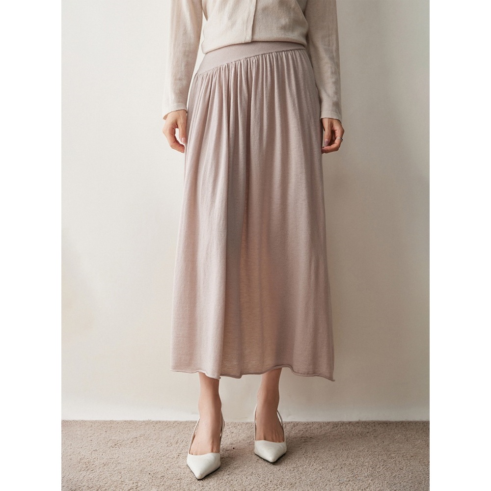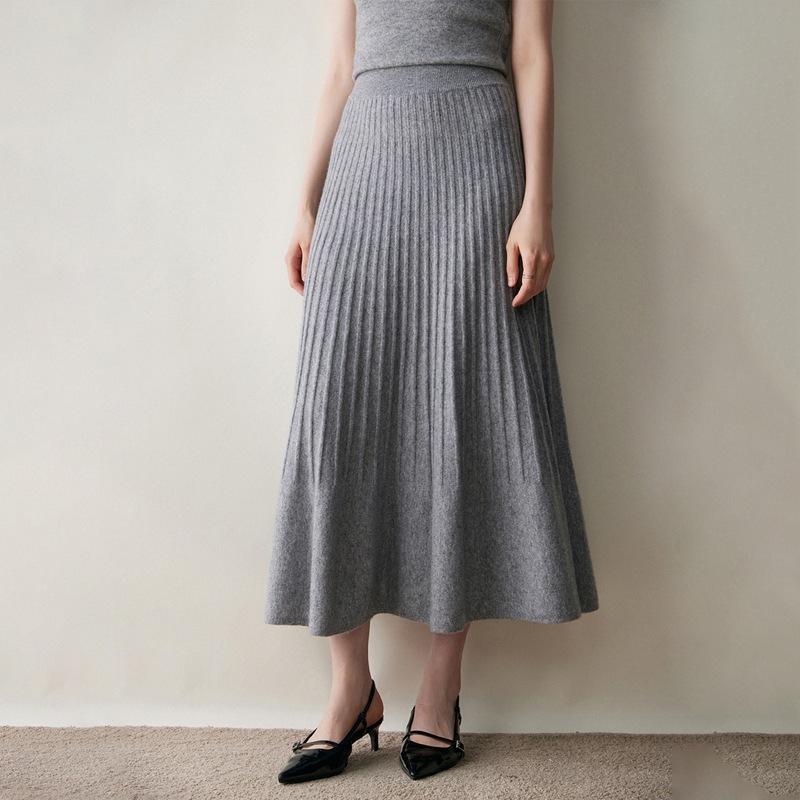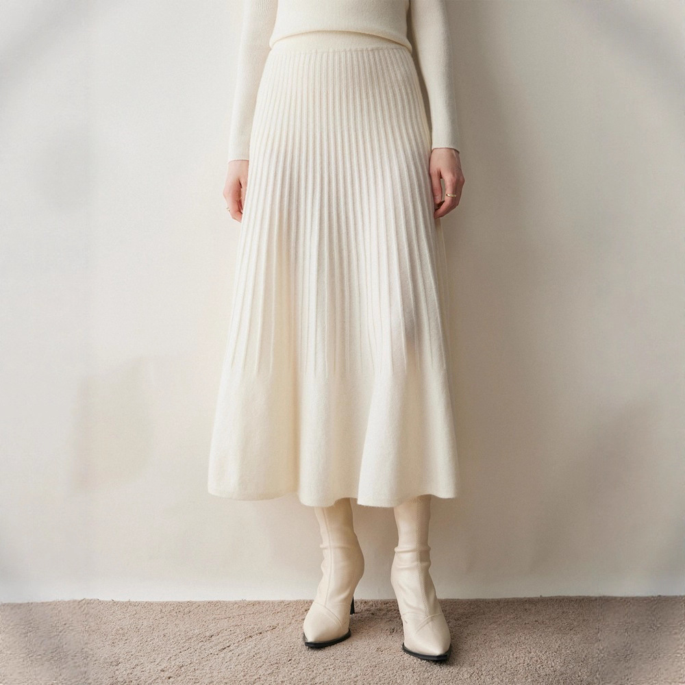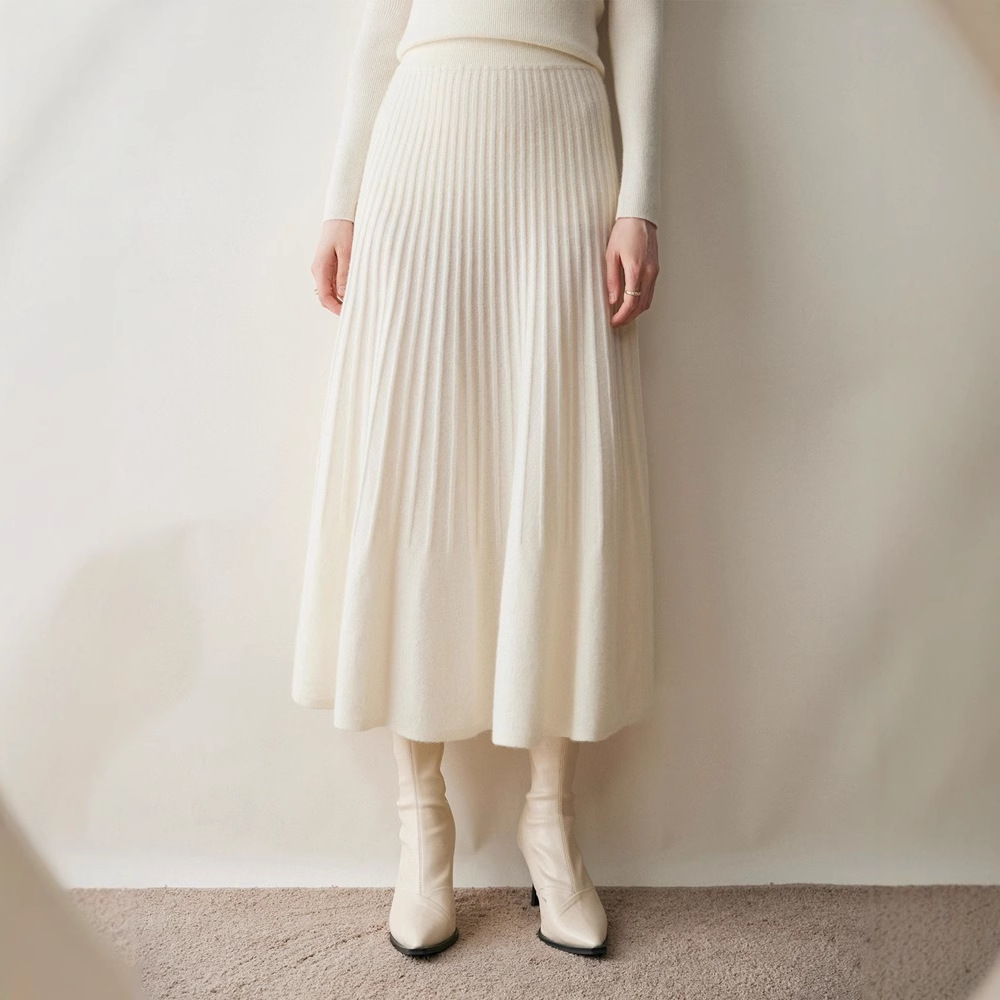 2025秋冬新款纯色女山羊绒针织半身裙伞裙抽条设计简约百搭保暖