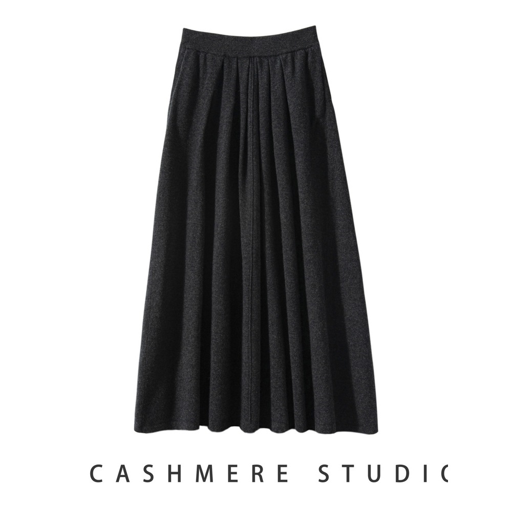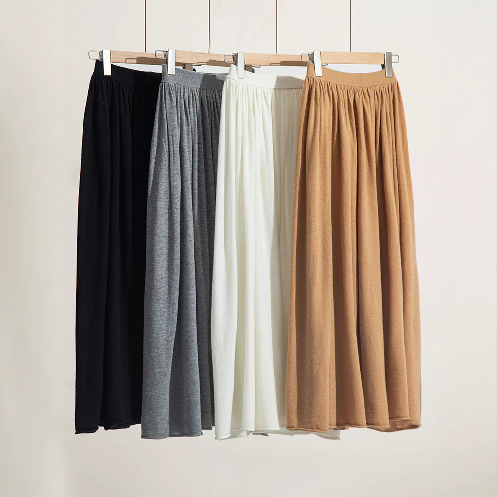 2025秋冬新款纯色女山羊绒针织半身裙精纺高腰伞裙宽松显瘦百搭