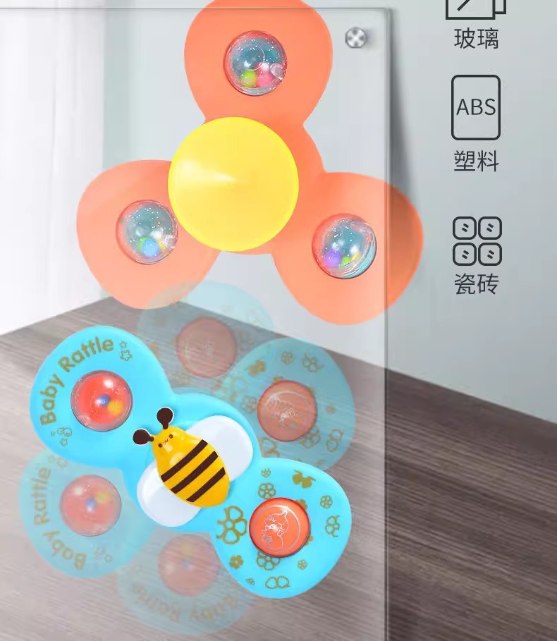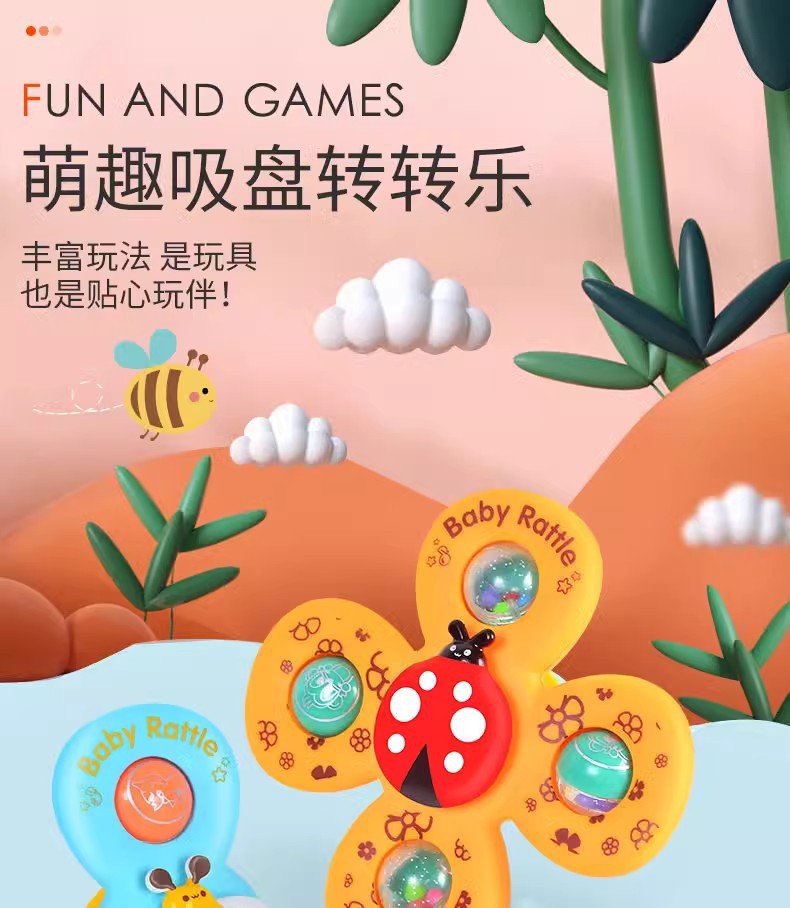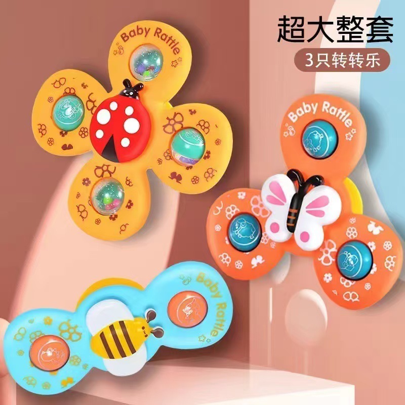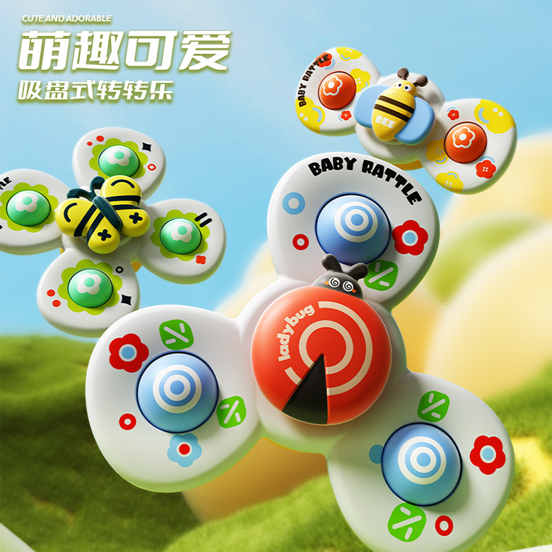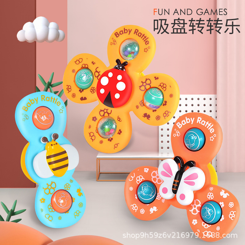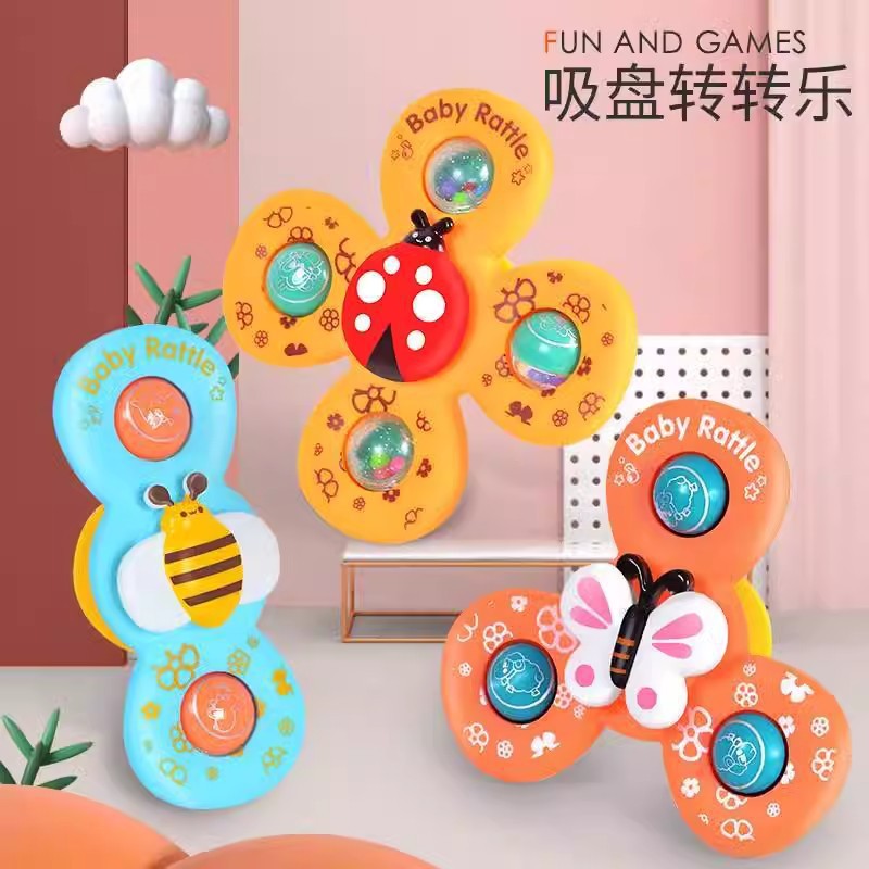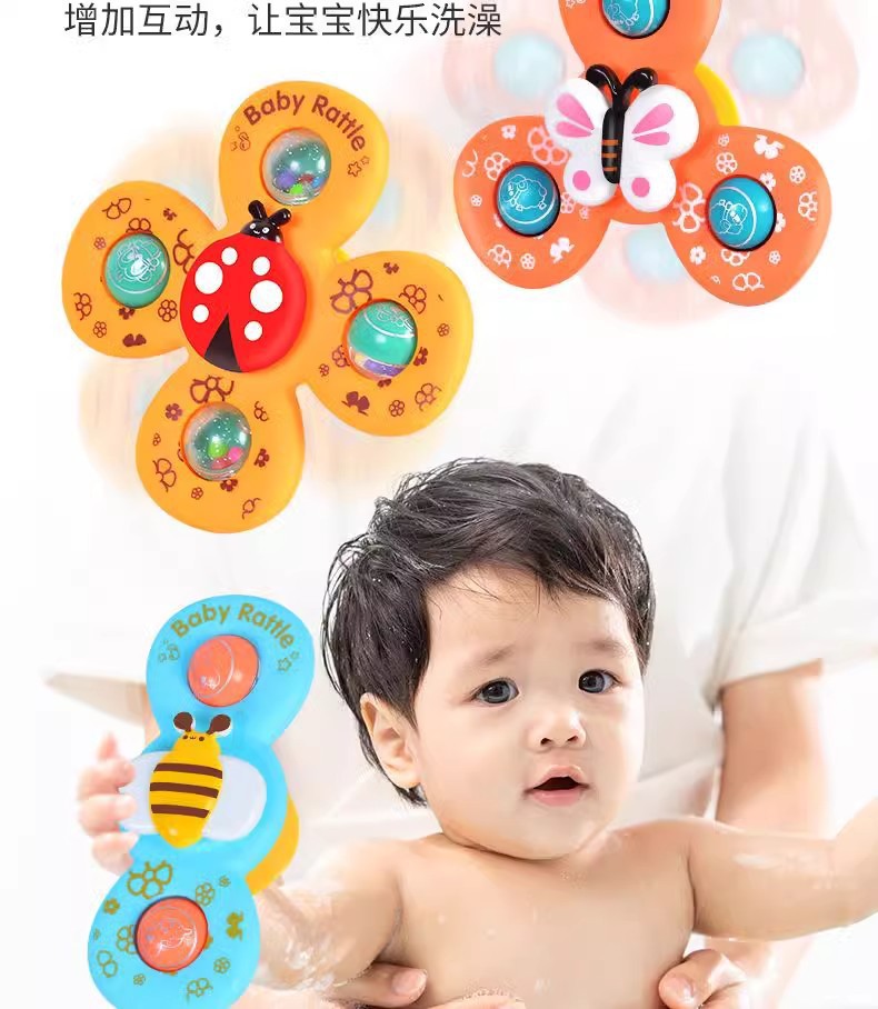 跨境新款婴儿吸盘转转乐宝宝卡通指尖陀螺牙胶浴室洗澡转转乐玩具
