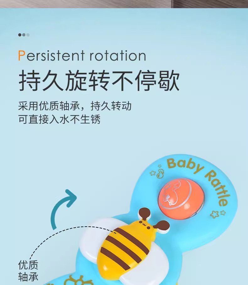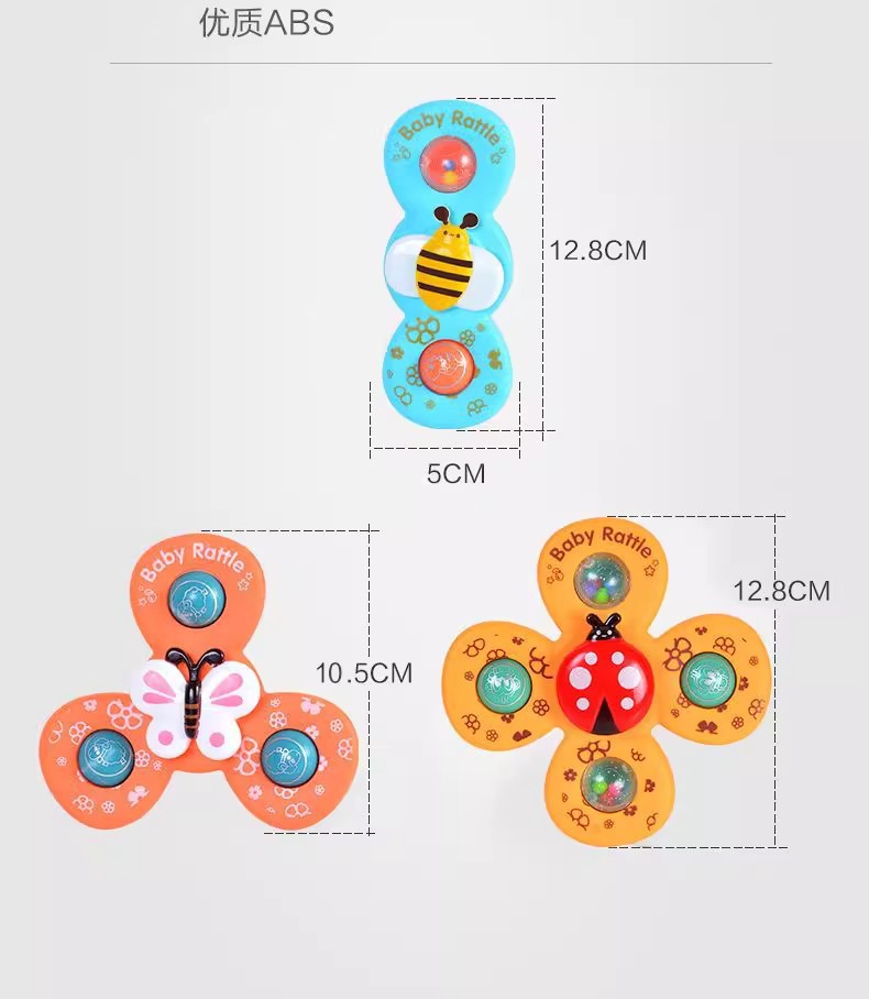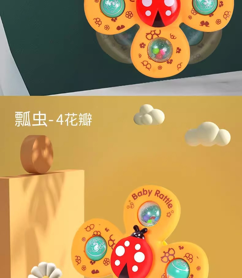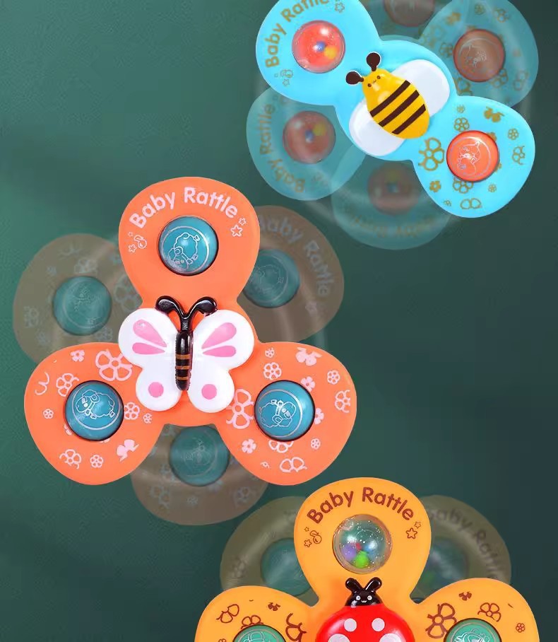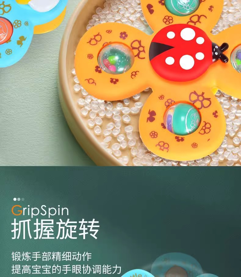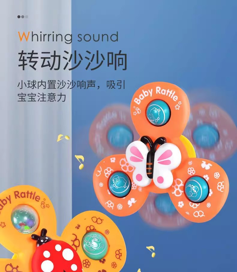 跨境新款婴儿吸盘转转乐宝宝卡通指尖陀螺牙胶浴室洗澡转转乐玩具