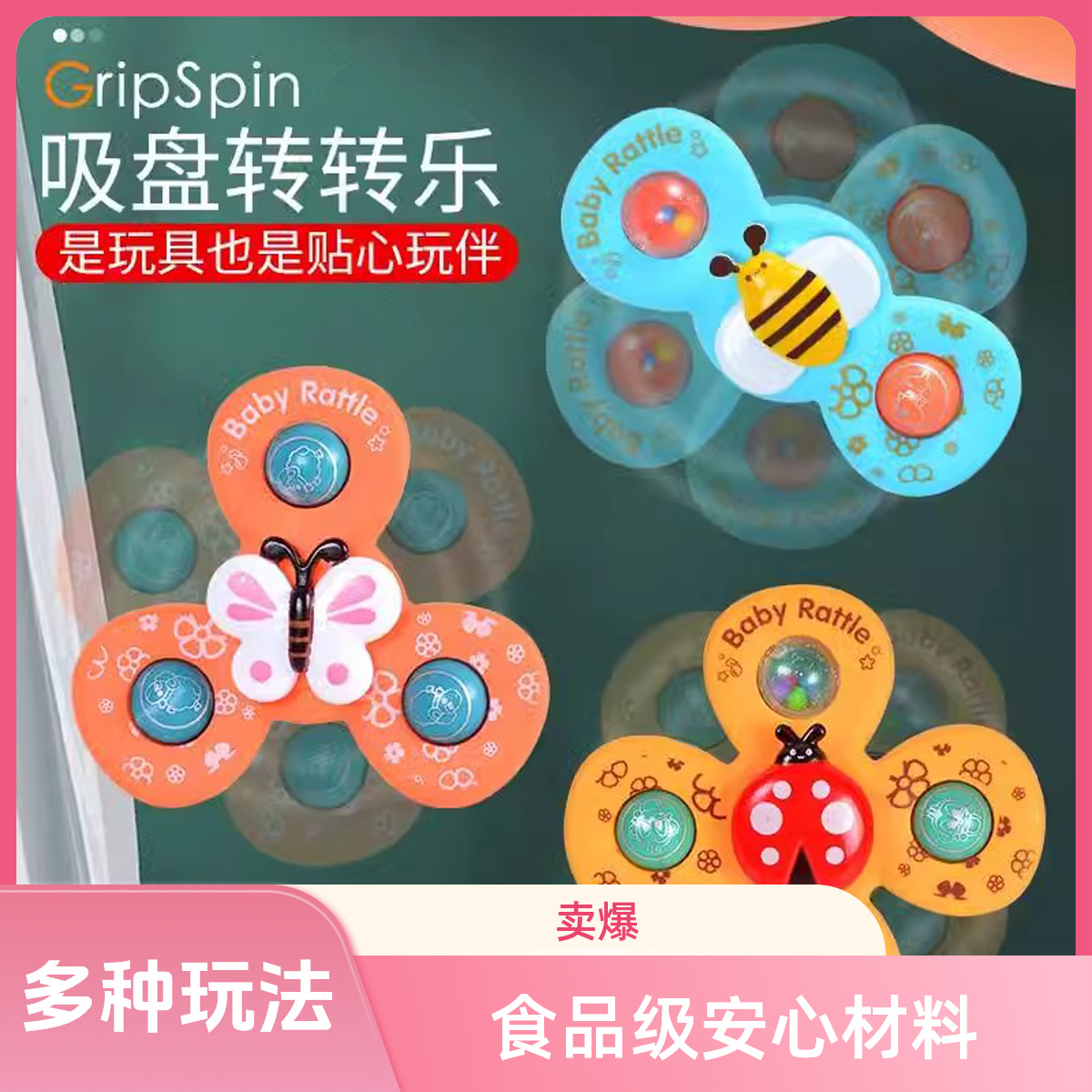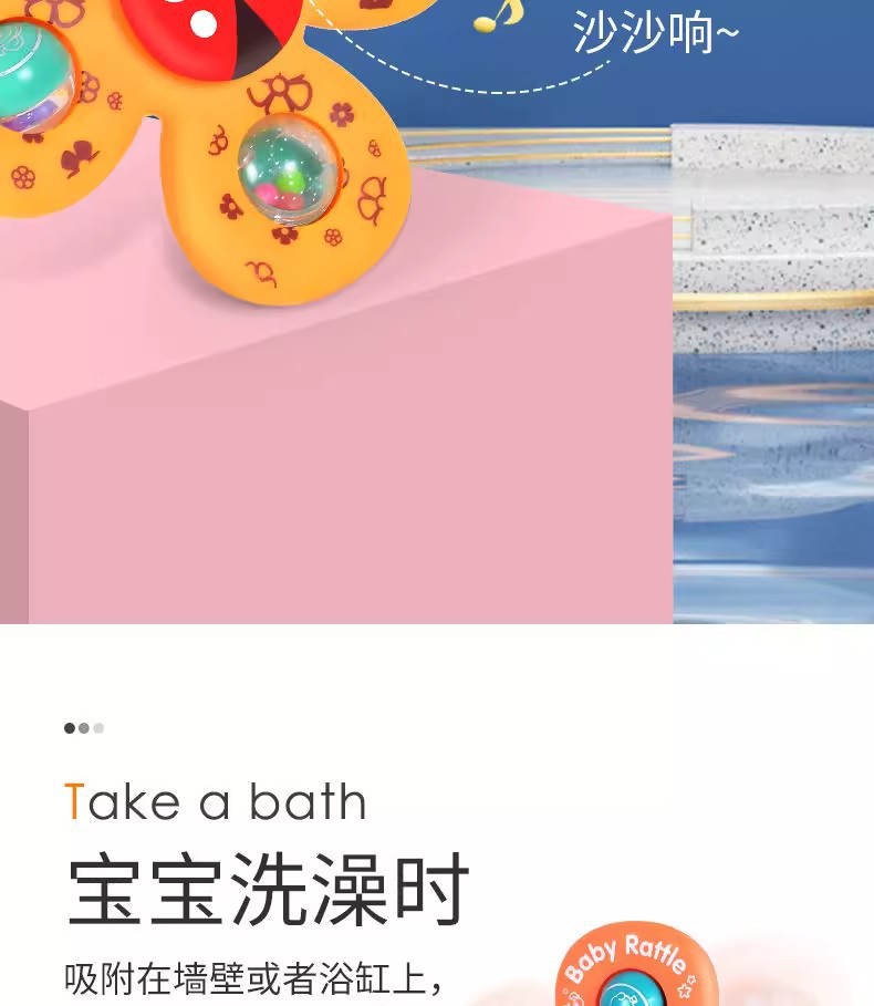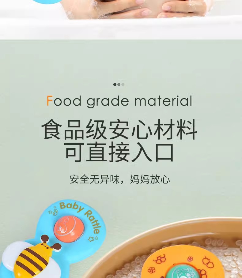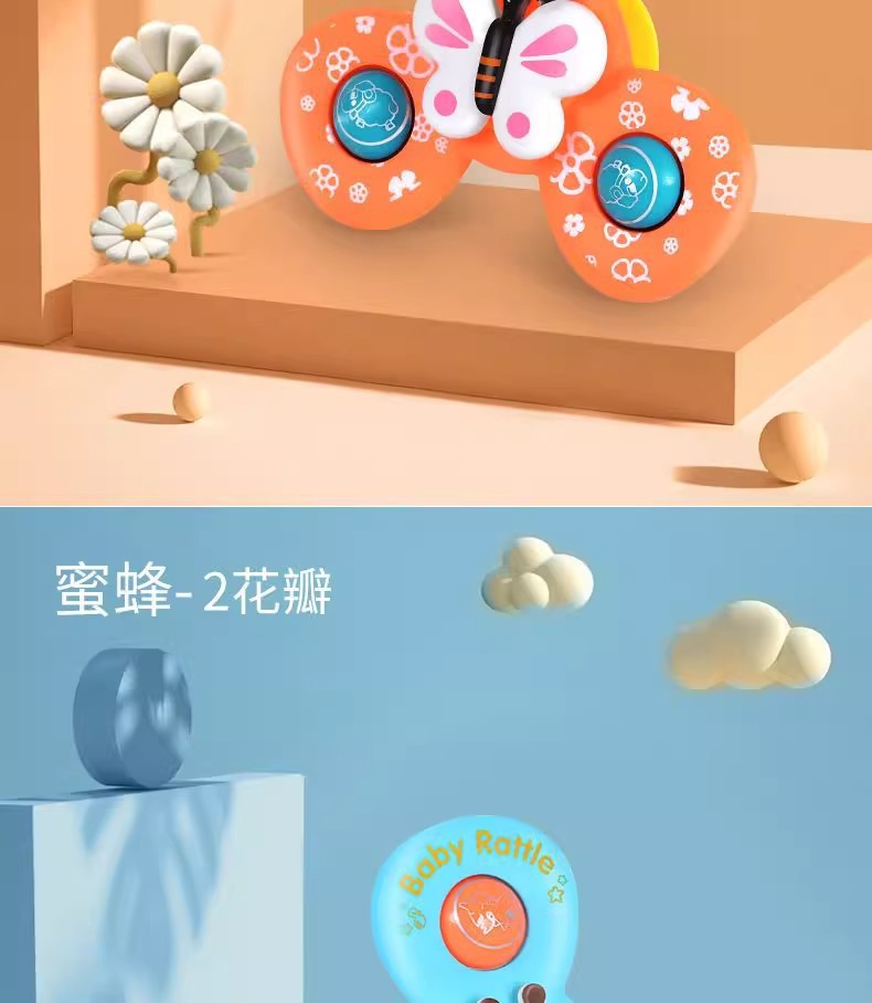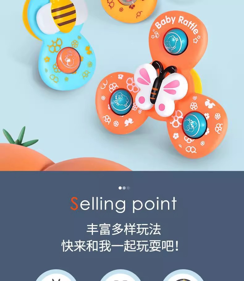 跨境新款婴儿吸盘转转乐宝宝卡通指尖陀螺牙胶浴室洗澡转转乐玩具