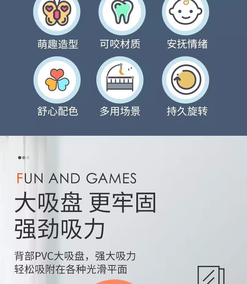 婴儿童吸盘旋转转乐手环带款可啃咬安抚宝宝推车载餐桌椅陀螺玩具