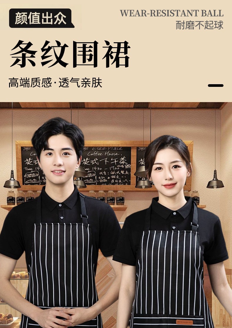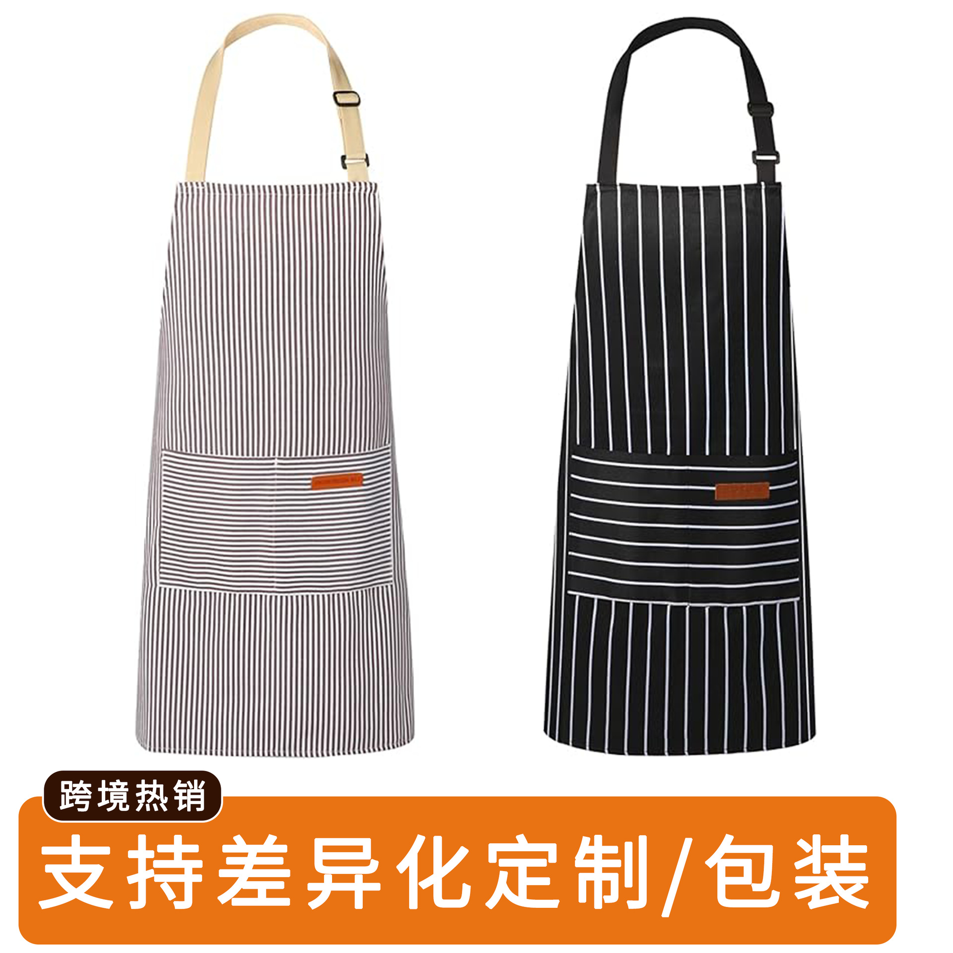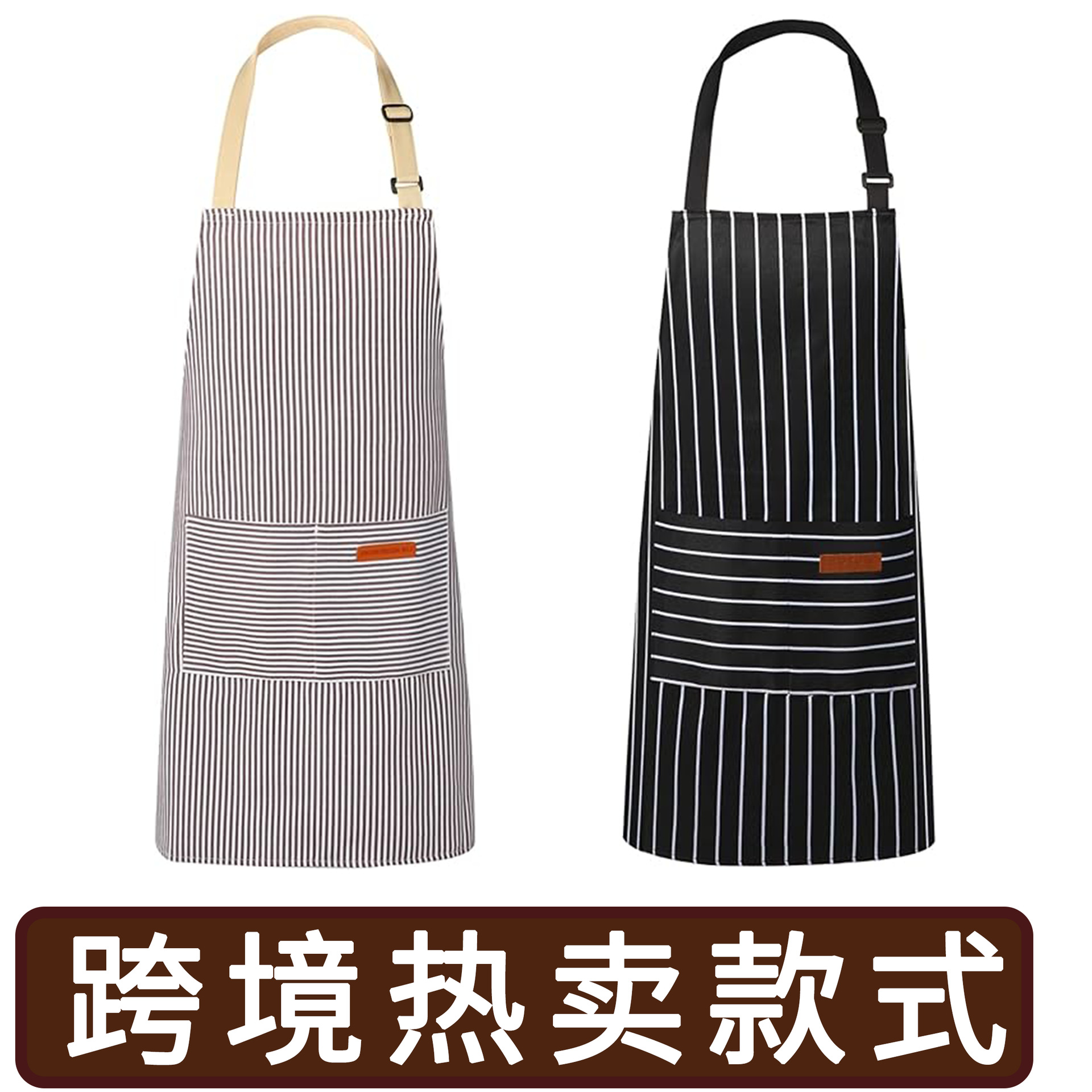 メーカー直販クロスボーダーアマゾン首掛けストライプポリエステルエプロンレストラン園芸カフェ作業服印logo