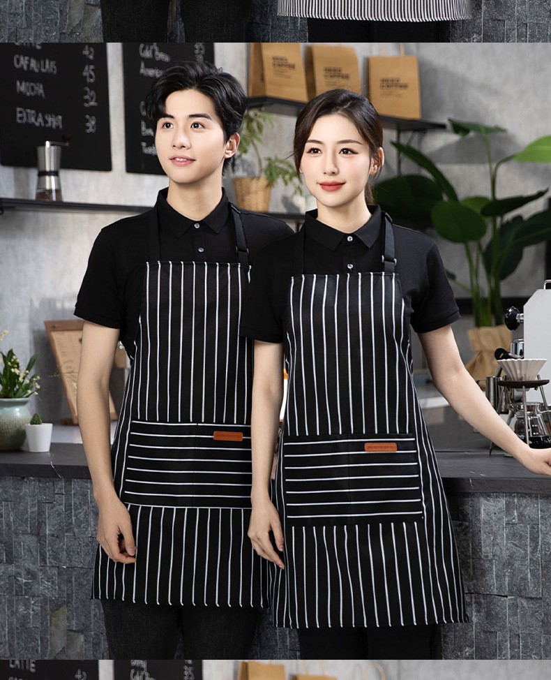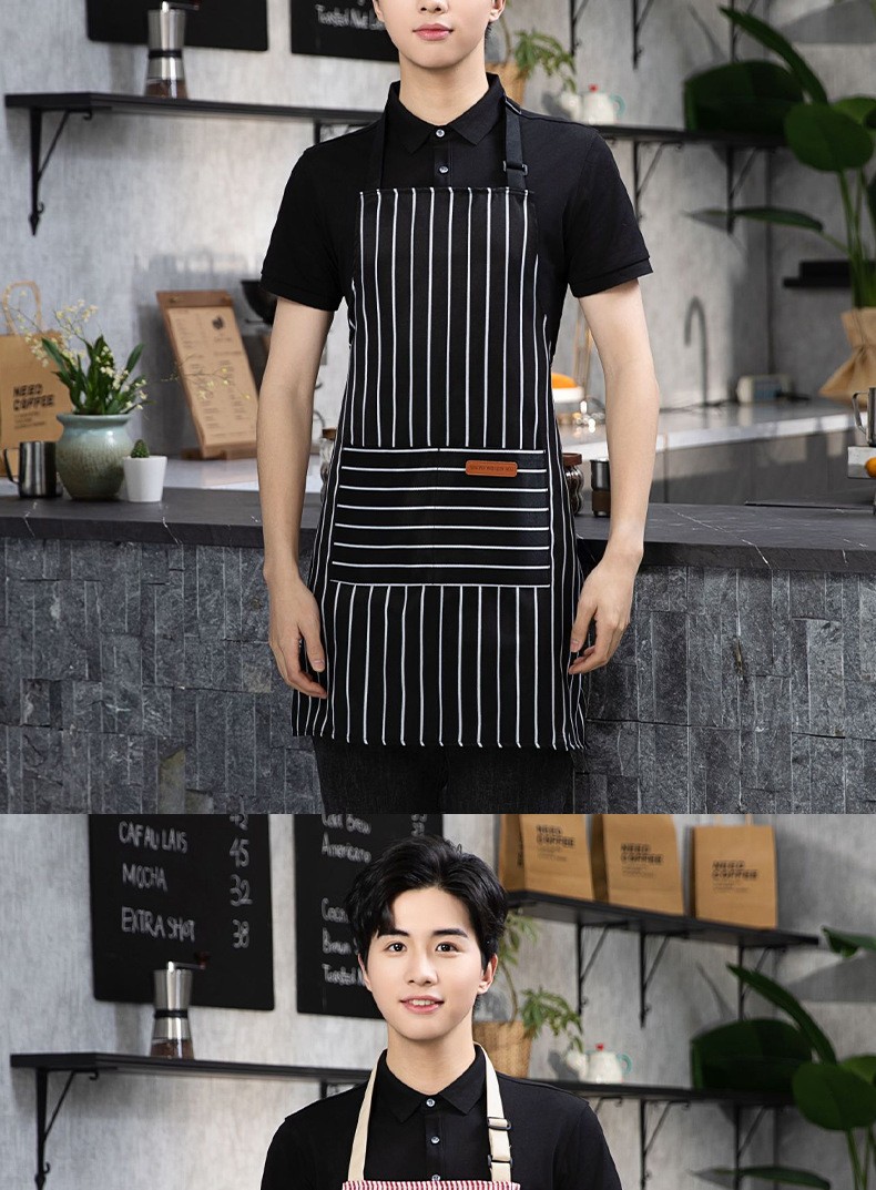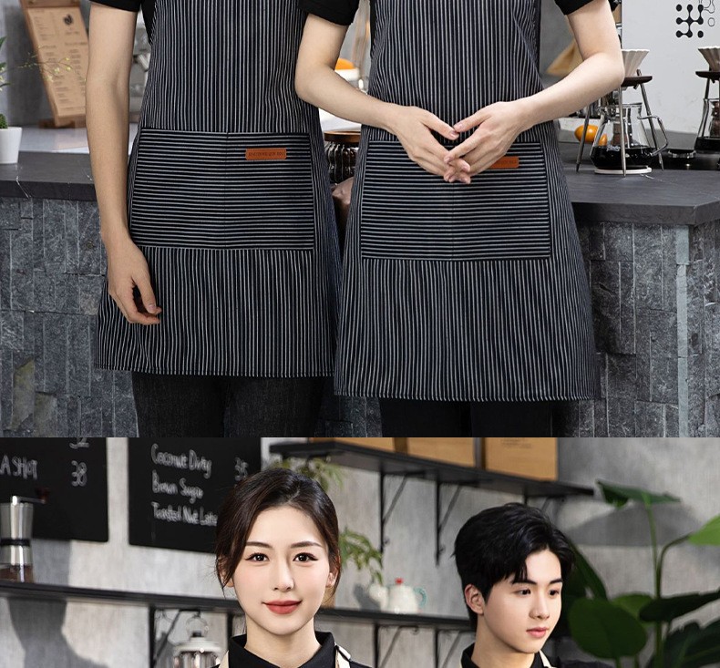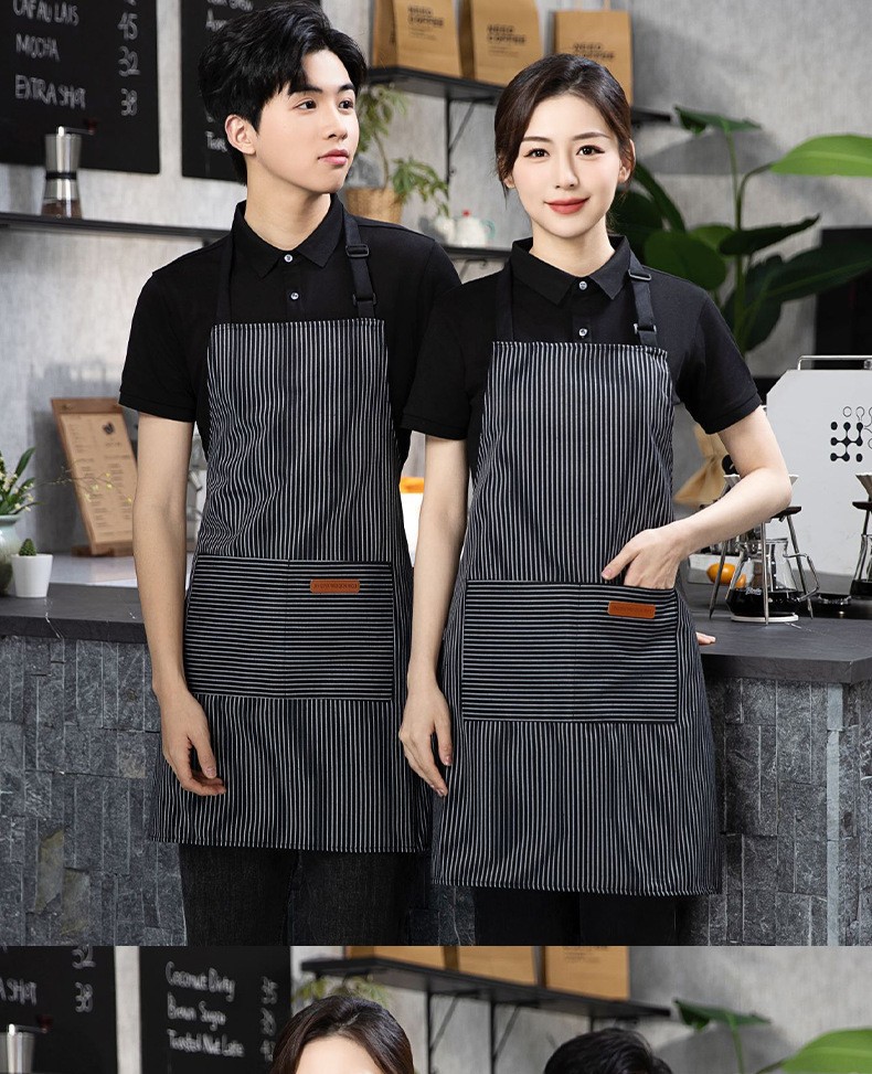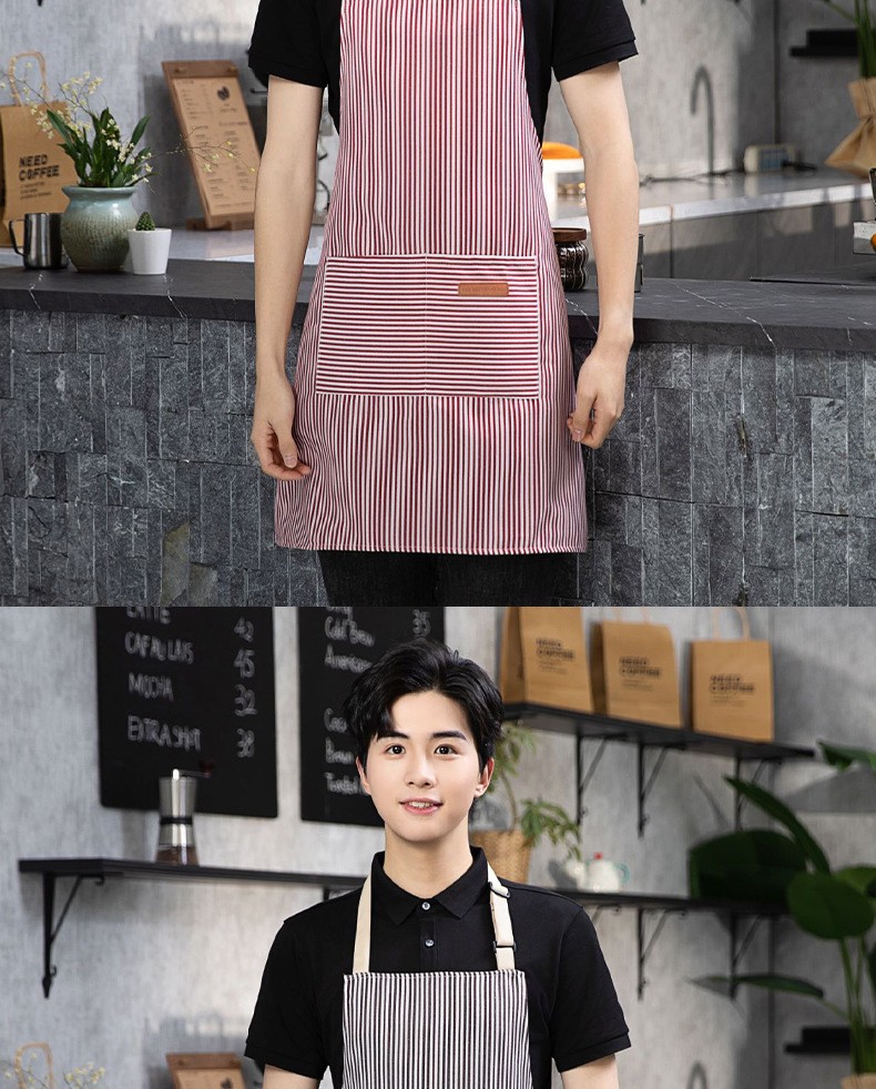 メーカー直販クロスボーダーアマゾン首掛けストライプポリエステルエプロンレストラン園芸カフェ作業服印logo