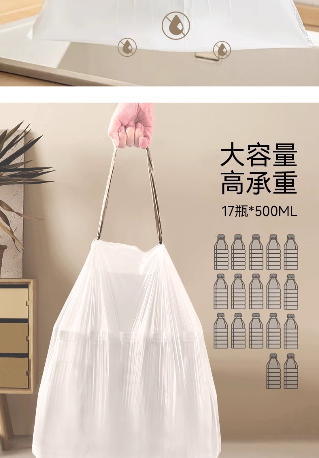 破れない特厚ゴミ袋 家庭用 巾着式 大型 厚手 持ち手付き キッチン 浴室用 大型プラスチック袋 卸売