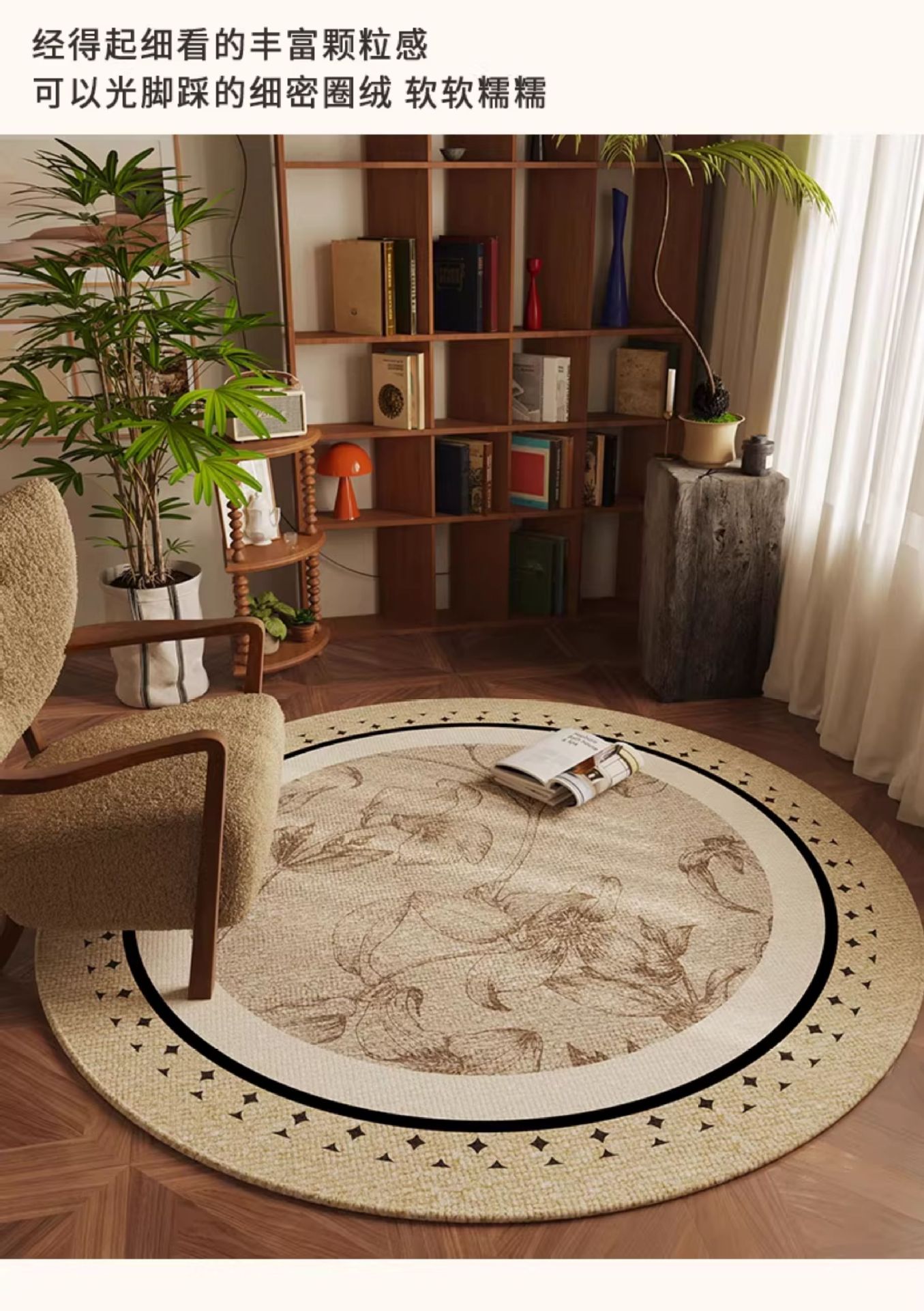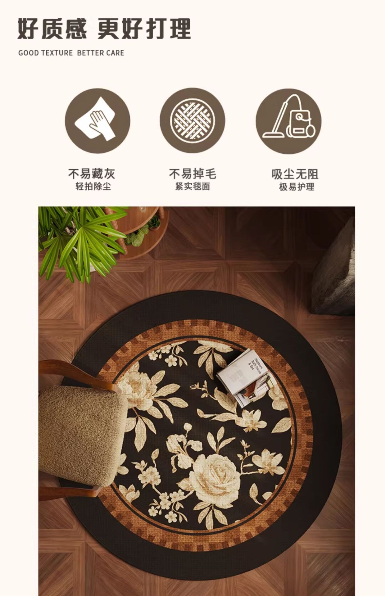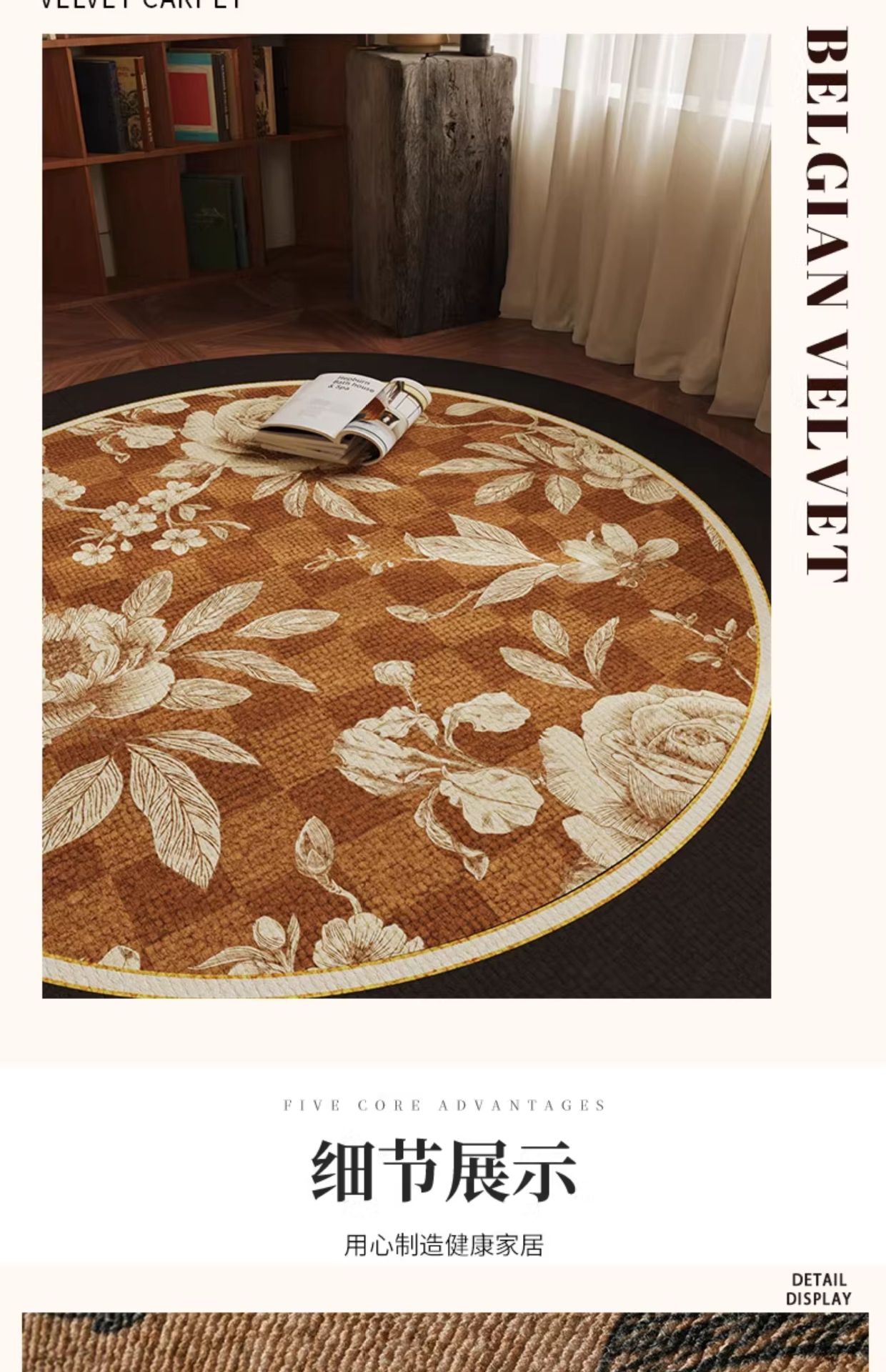 ラウンドカーペットリビングルームアンティークスタイルフレンチレトロベッドルームベッドサイドブランケットクロークフロアマットハイエンド2025新しいスタイル