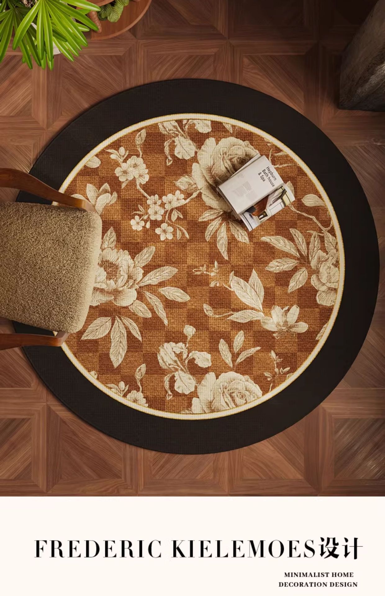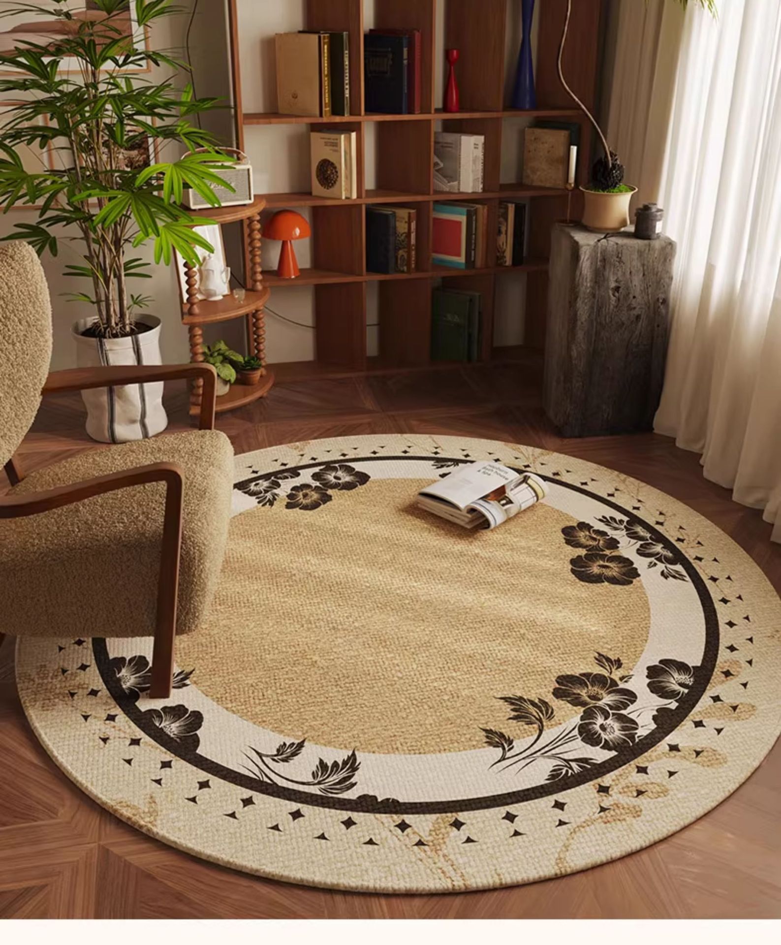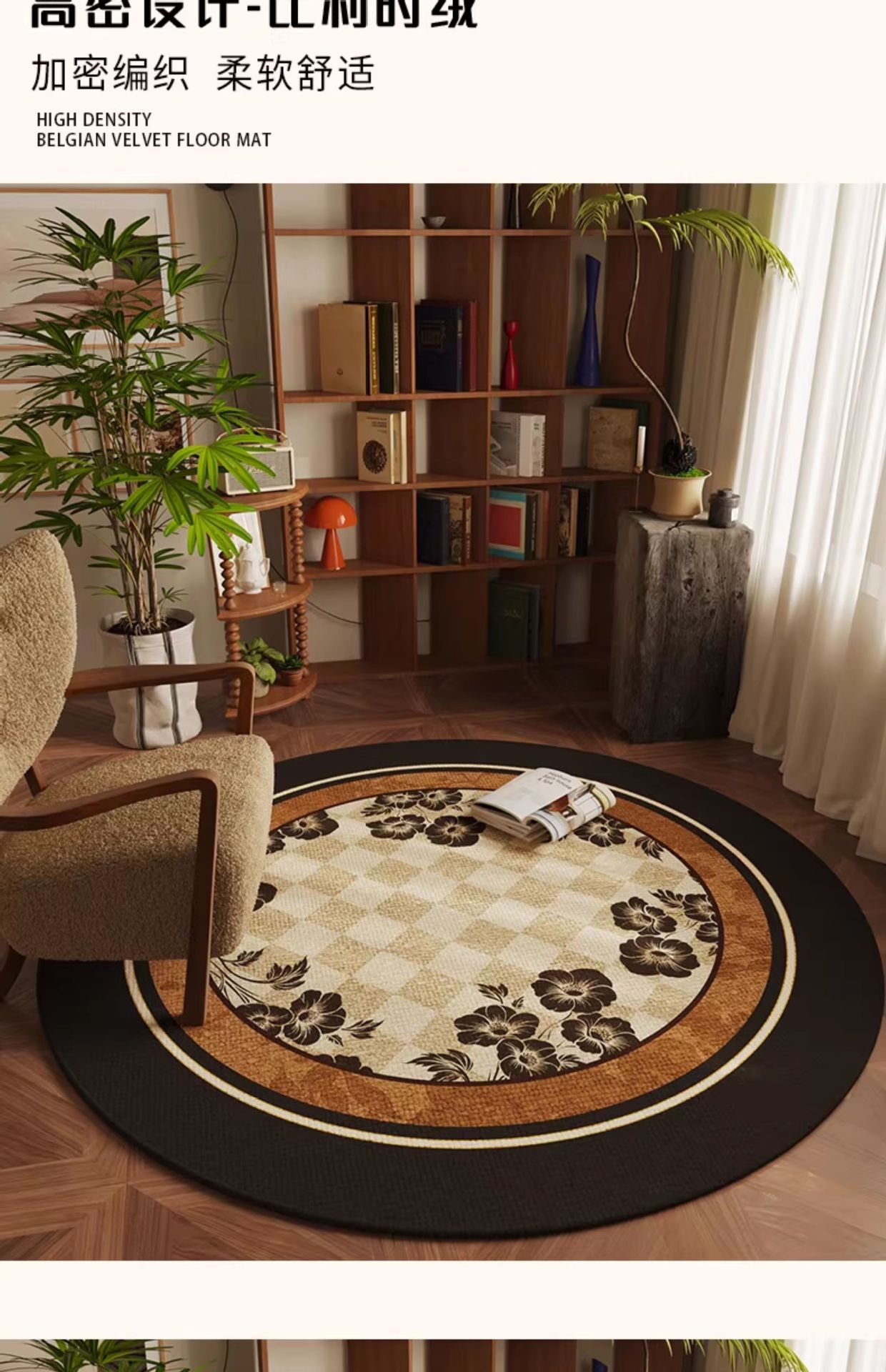 ラウンドカーペットリビングルームアンティークスタイルフレンチレトロベッドルームベッドサイドブランケットクロークフロアマットハイエンド2025新しいスタイル