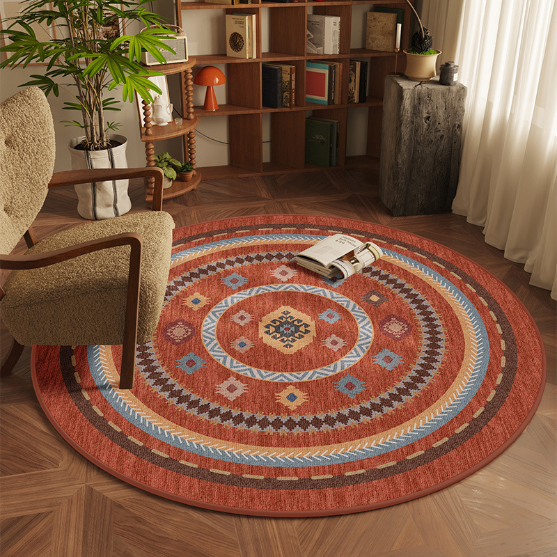 新款民族风高级感圆形地毯客厅沙发茶几地垫书房转椅垫防滑床边毯