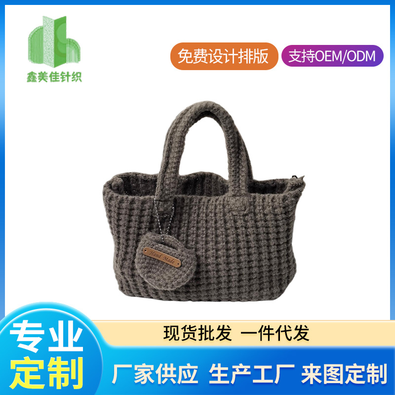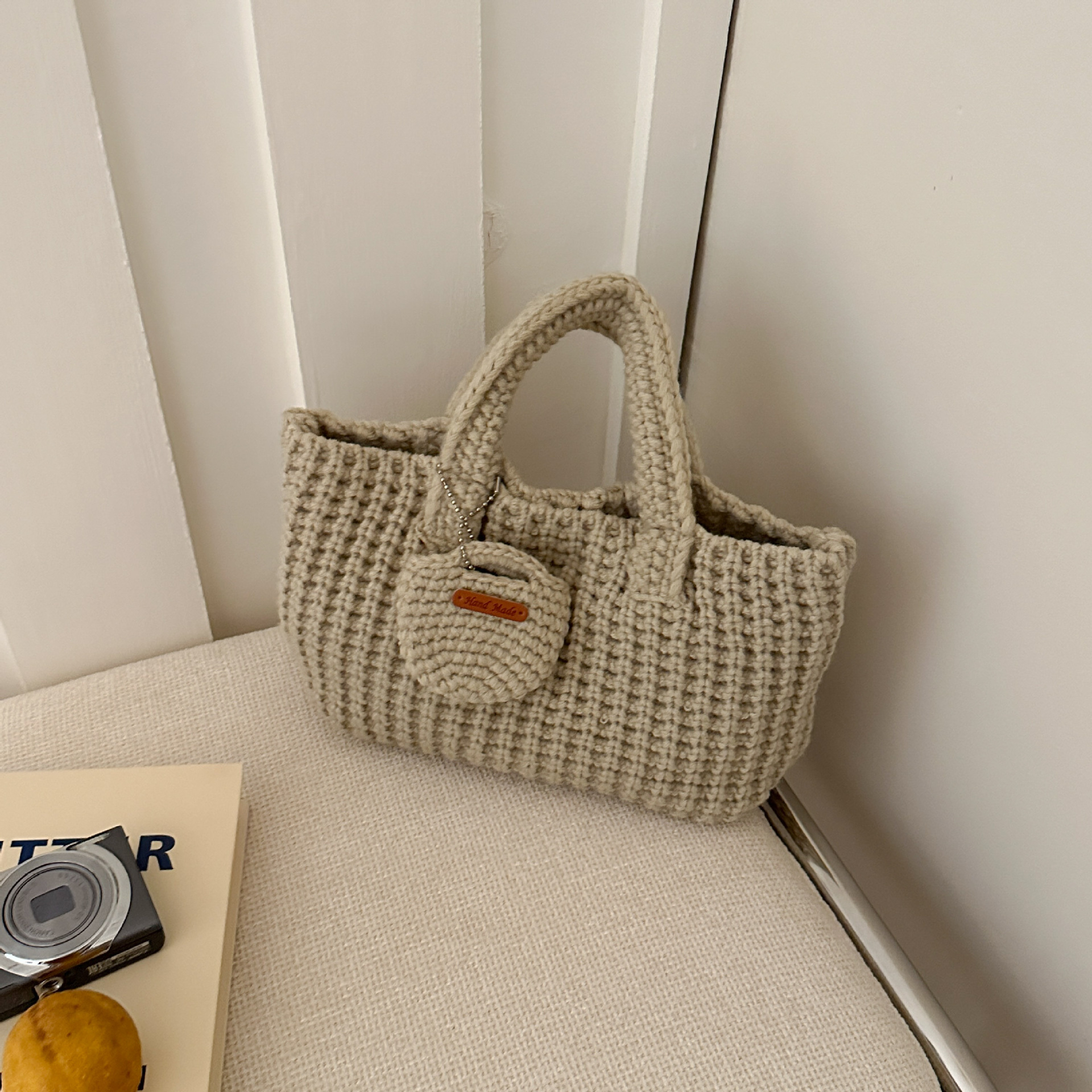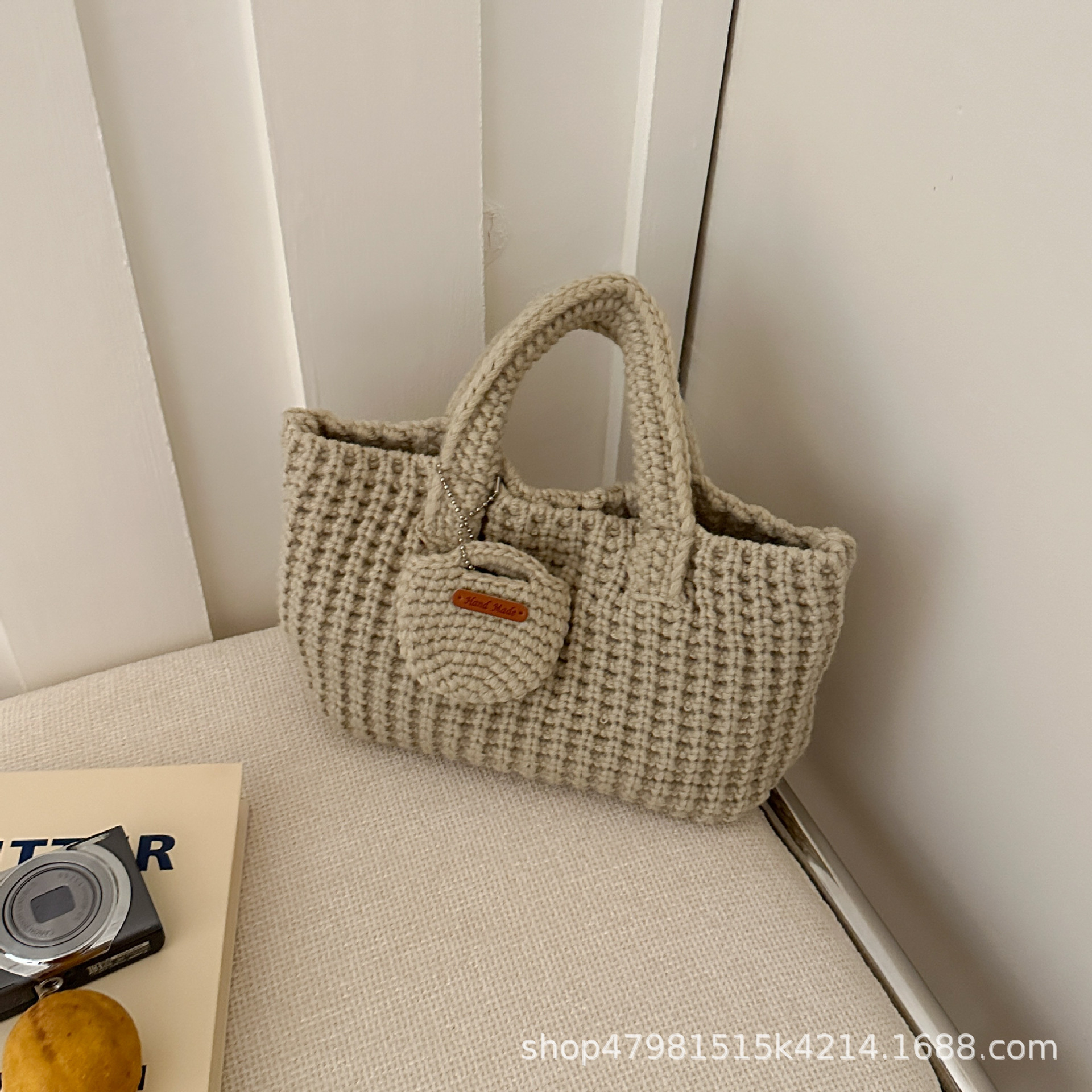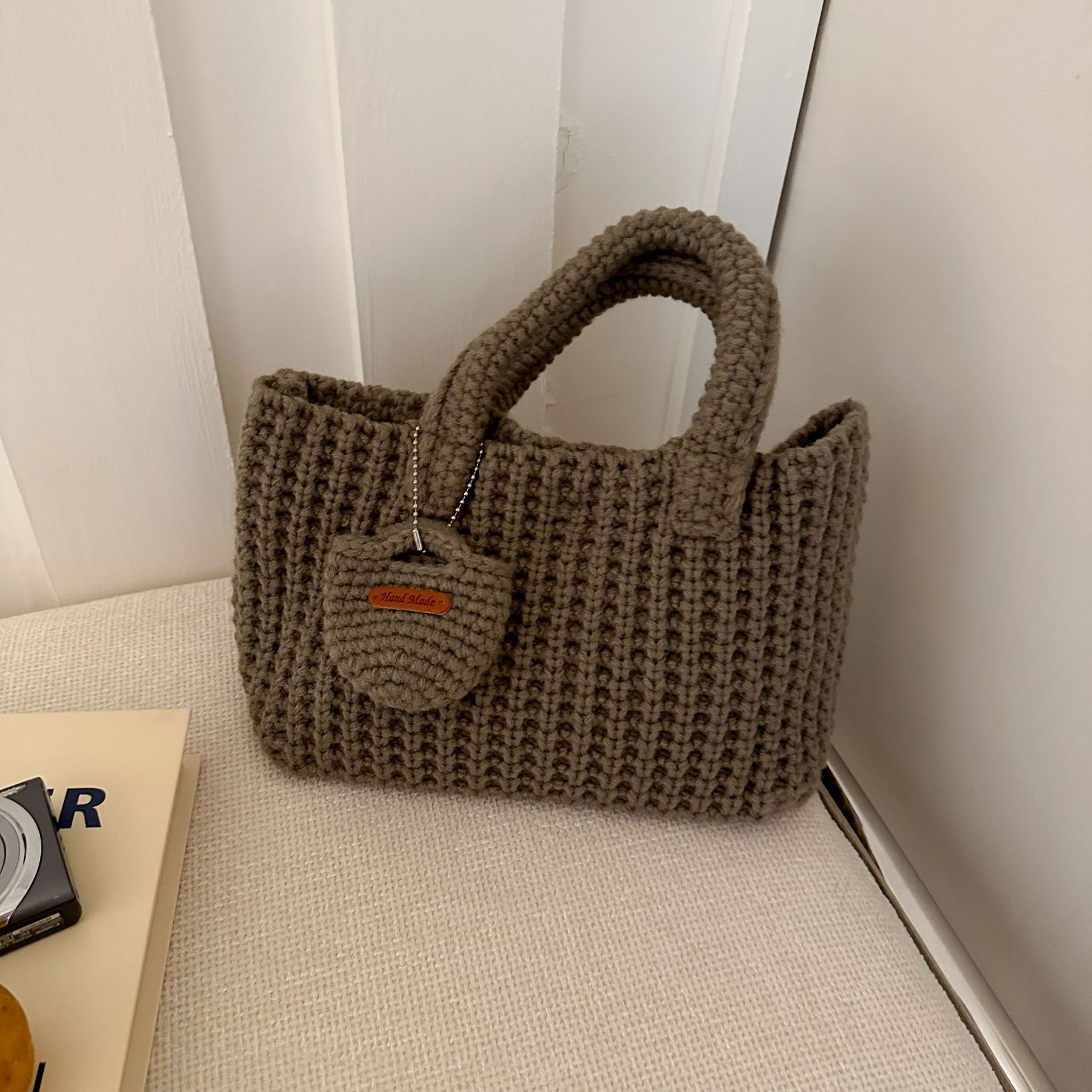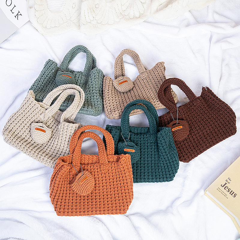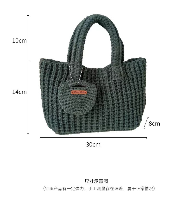 韩版新款编织包纯色手工钩织包可爱毛线手提包秋冬穿搭手拎装饰包