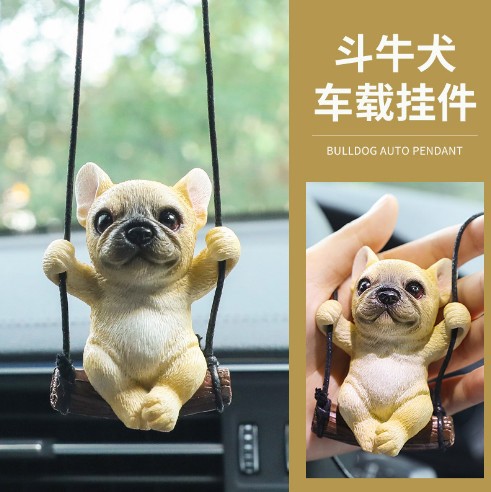 カーアクセサリーカーアクセサリー新しいかわいい車のペンダントペンダントインターネット有名人の車の装飾バックミラーブルドッグ