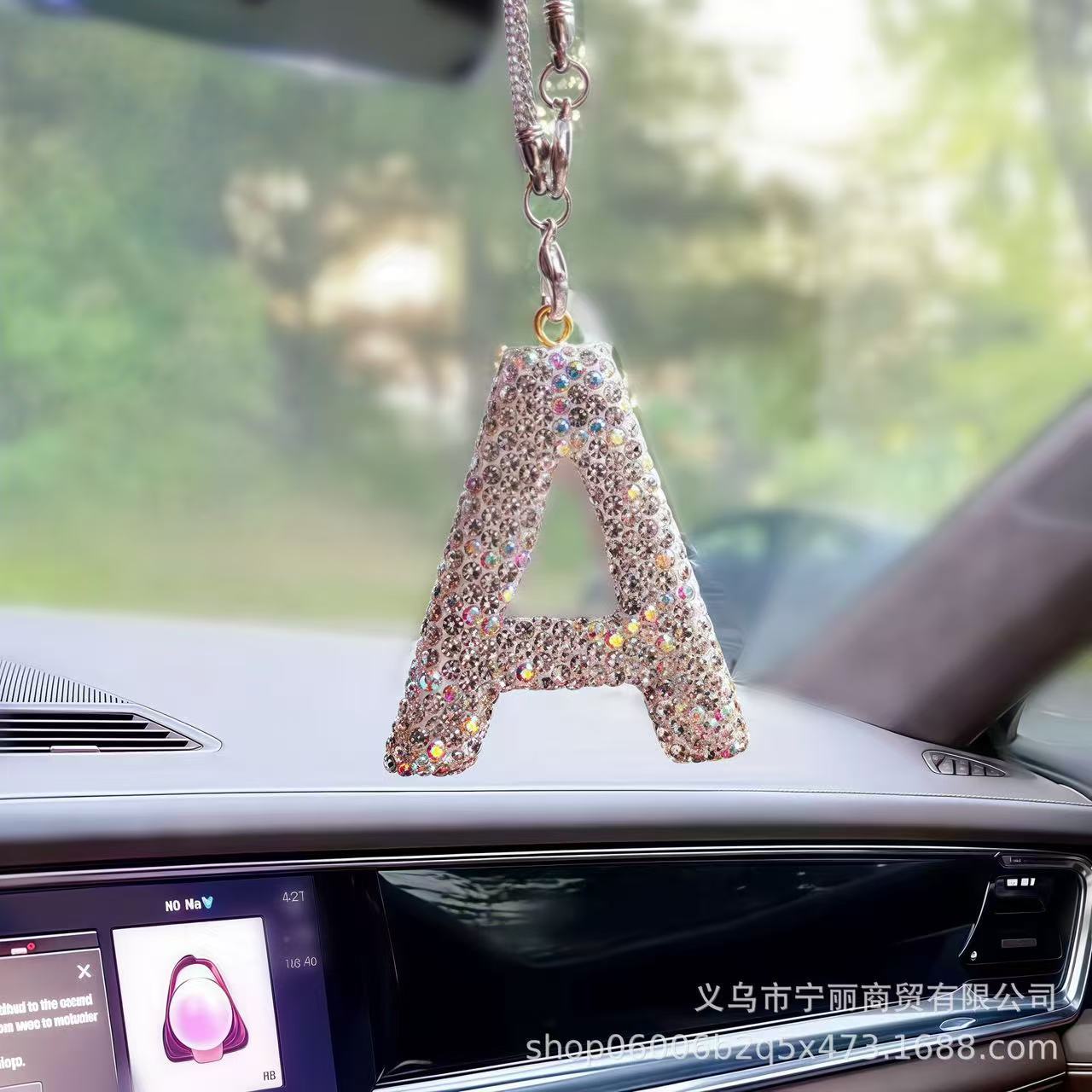 轻奢陶泥满钻汽车内饰配饰挂件女士后视镜吊件吊坠挂饰英文字母