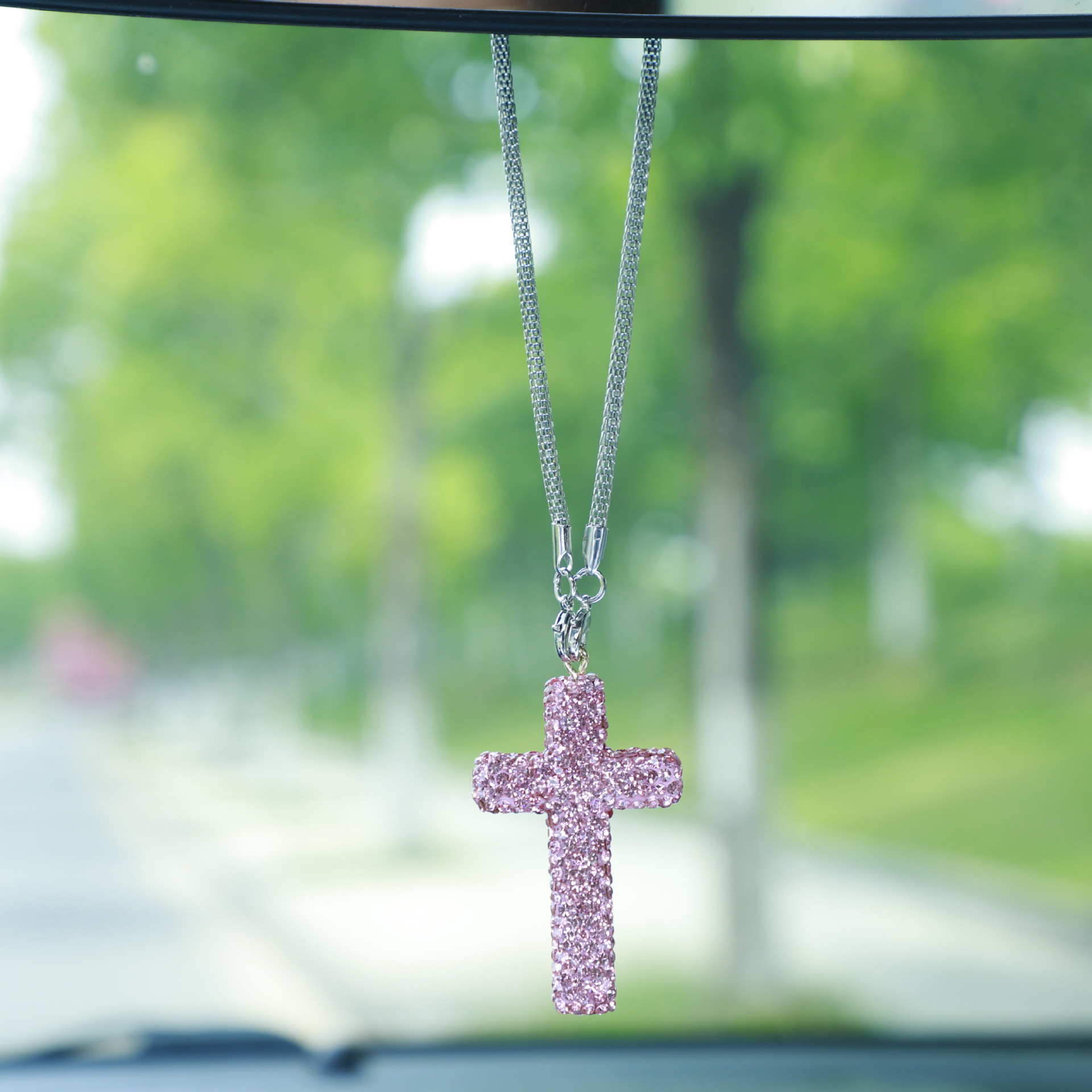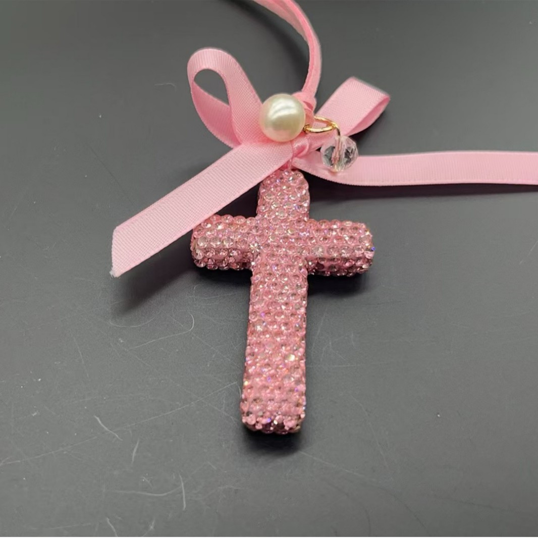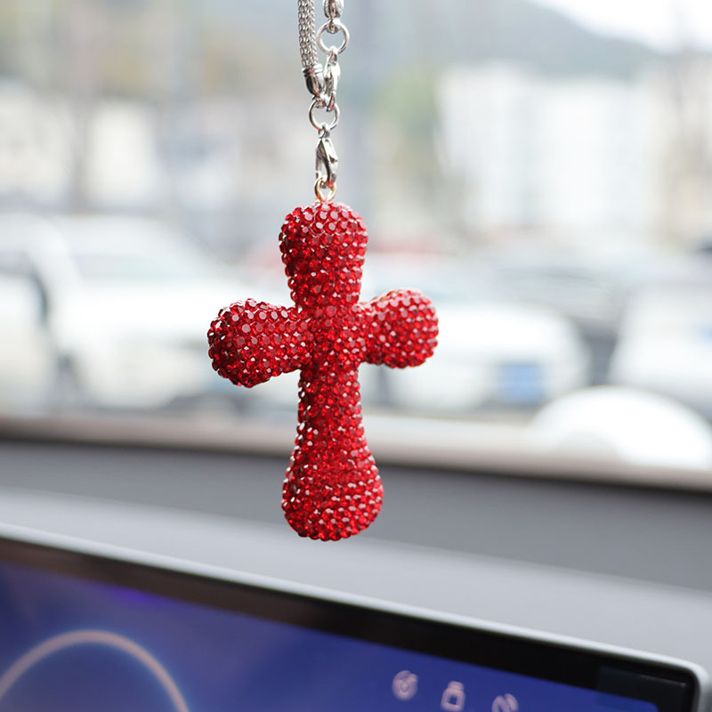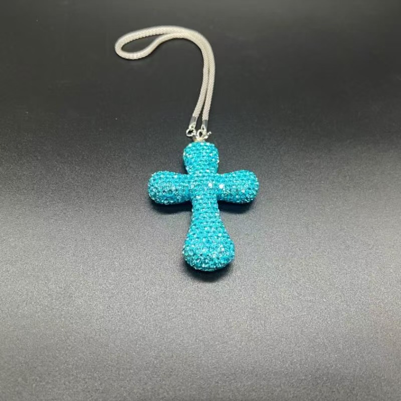 新款陶泥水钻趣味汽车后视镜挂件车内饰挂饰车载圆角十字架挂件