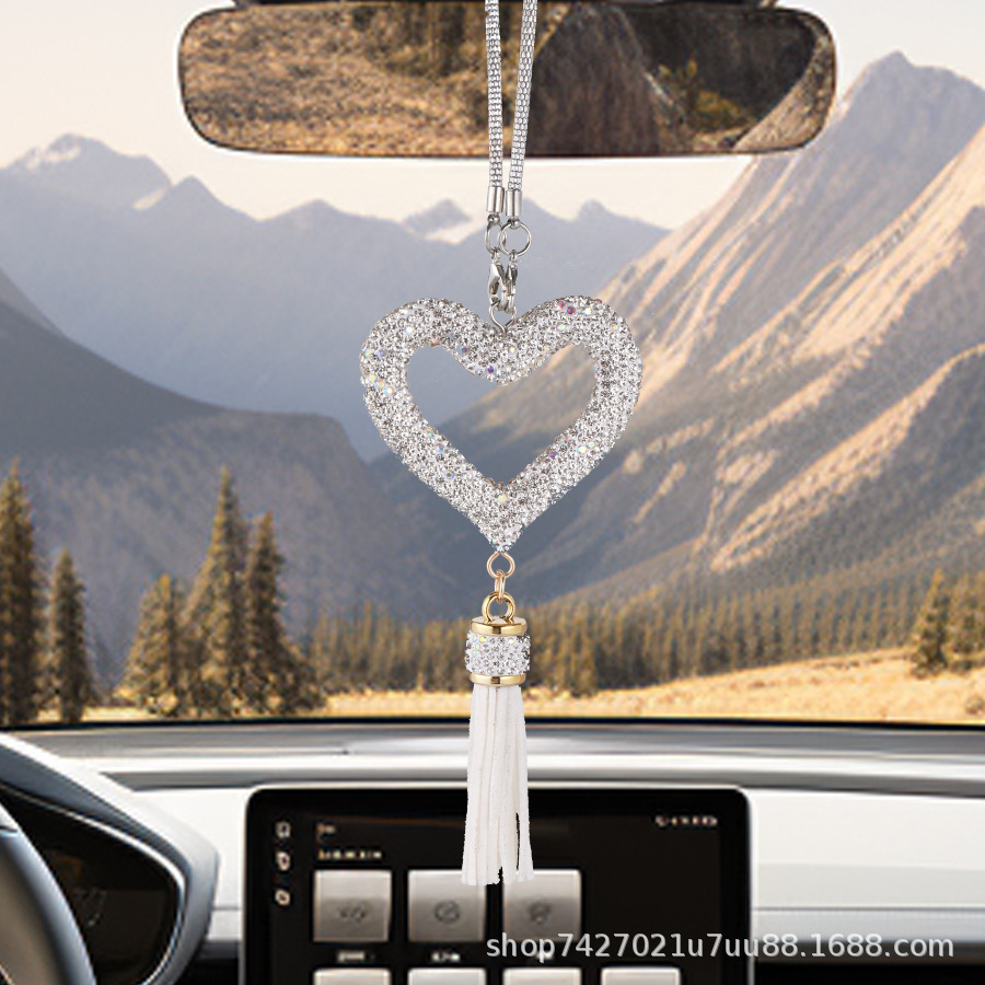 创新镂空陶泥爱心汽车挂件挂饰 汽车后视镜镶钻桃心车用挂坠吊坠