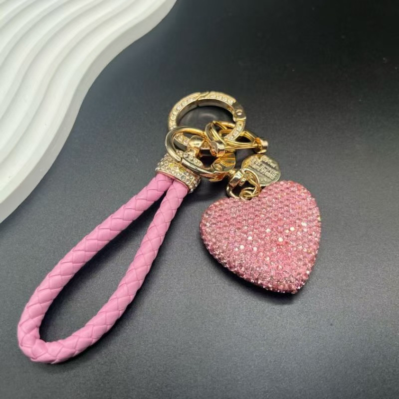 国境を越えたホットセールの女性用車のキーホルダー、フルダイヤモンドキーホルダー、バレンタインデーのラブバッグペンダント、ピーチハートキーホルダー