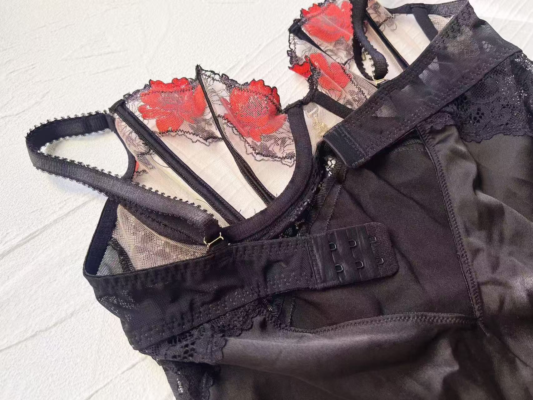 英国boux纯原薄垫内衣蔷薇花女上托防下垂侧收防副乳束身文胸丁裤