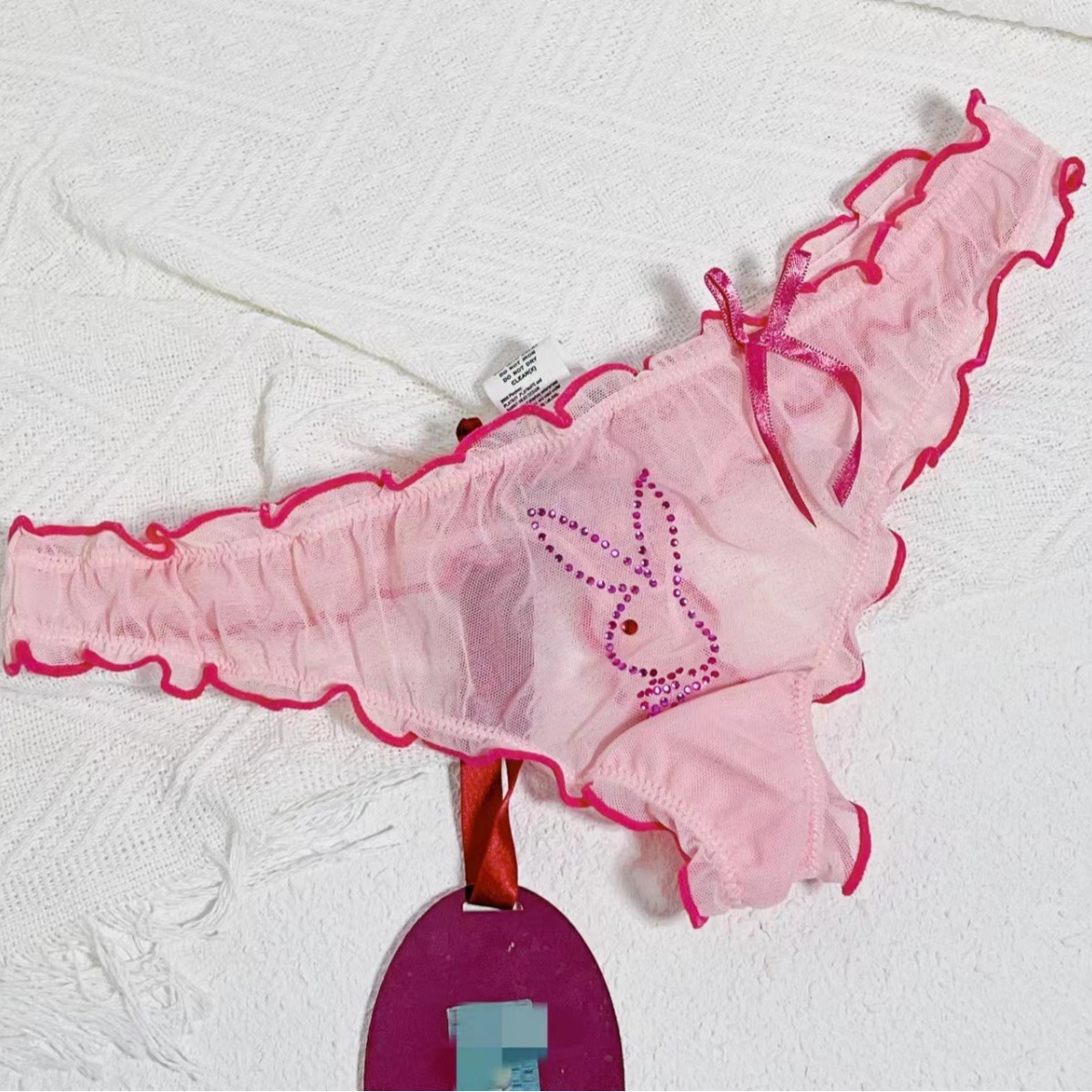 花花playb** 欧米向け貿易 フリル付きメッシュプリント ラインストーン付き超薄型快適ショーツ 少しラインストーンが落ちる