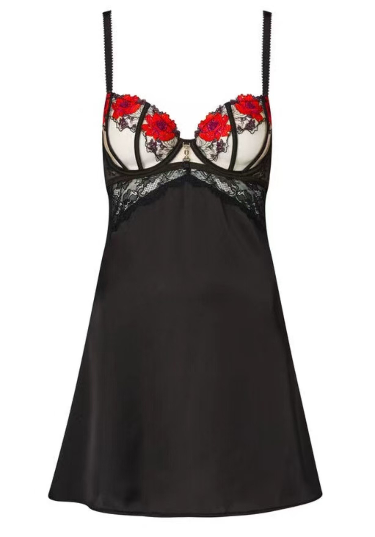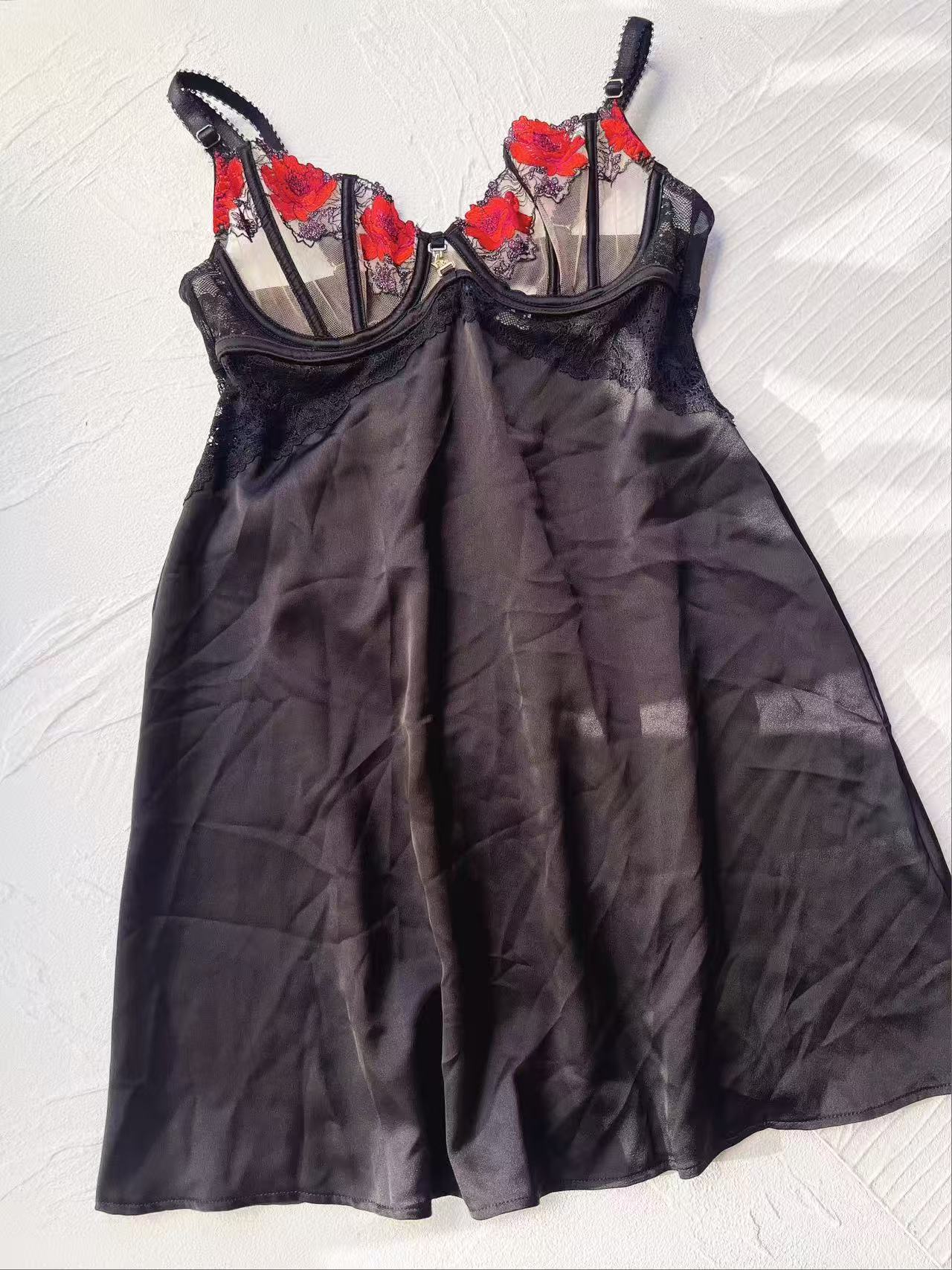 原单正品英国annsummer玫瑰刺绣高级感蕾丝跨境外贸薄垫欧美睡裙