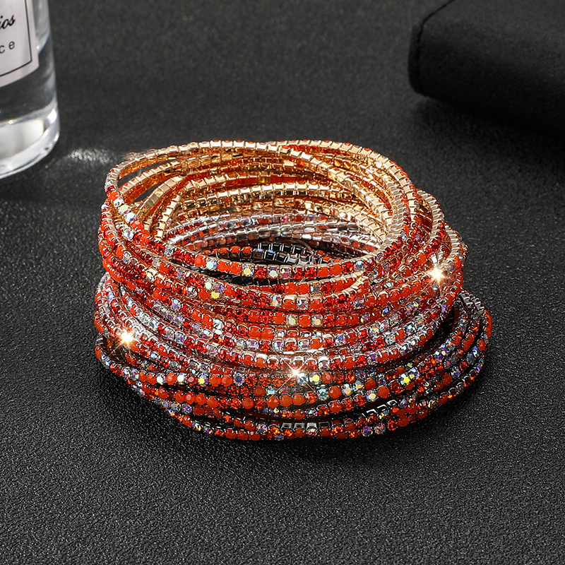 亚马逊多层珍珠水钻手链跨境缠绕钢丝手镯新娘弹力满钻珍珠手镯女