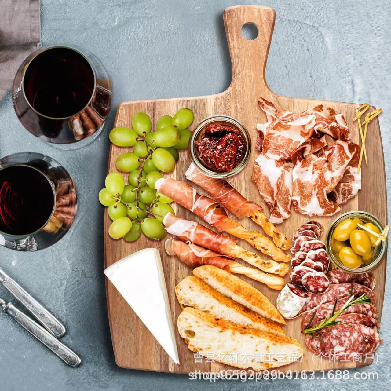アカシア木製まな板 無垢材まな板 野菜と果物のまな板 アカシア木製ハンドルまな板 ピザステーキボード