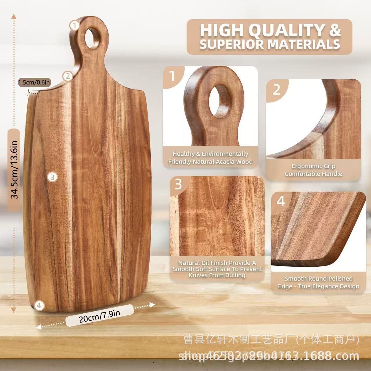 長い柄のアカシアの木のまな板の実木のまな板のまな板の家庭用の木のまな板のアイデアは道具のアマゾンの卸売りを振ります