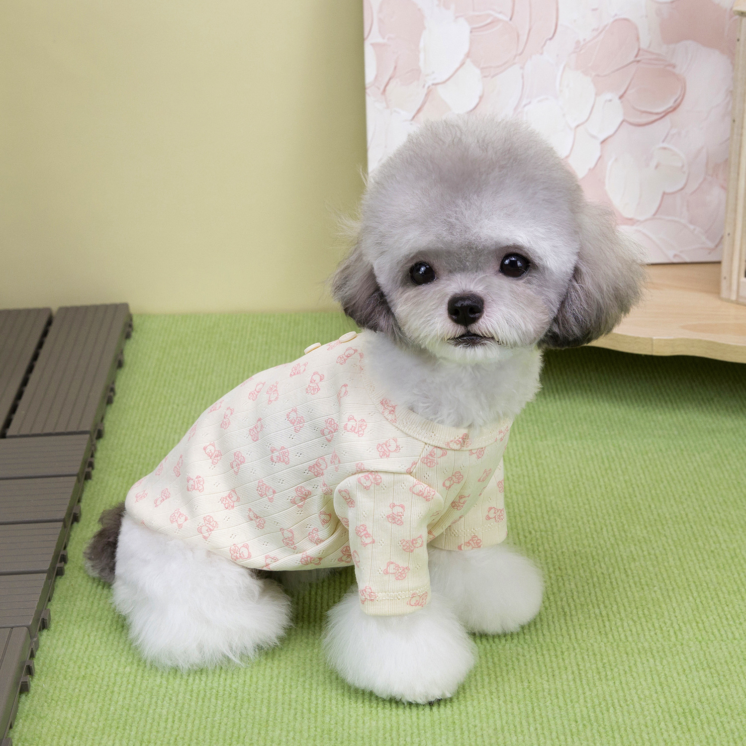 ペット用品卸売り犬服猫小型犬服快適弾力性24四色プリント熊四脚家庭服