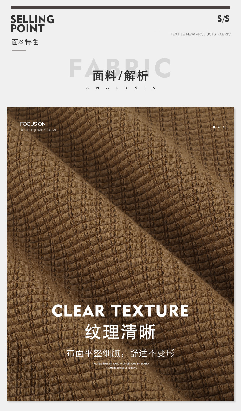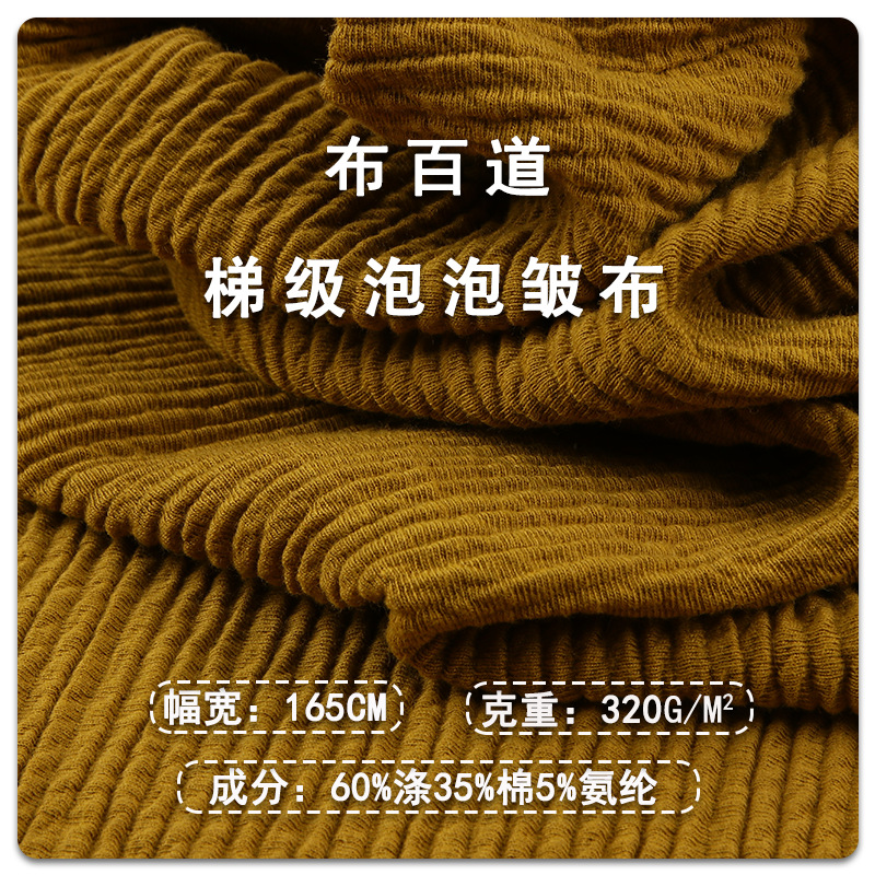 棉涤泡泡皱布提花面料 240g亲肤肌理感凹凸针织布 时尚连衣裙面料