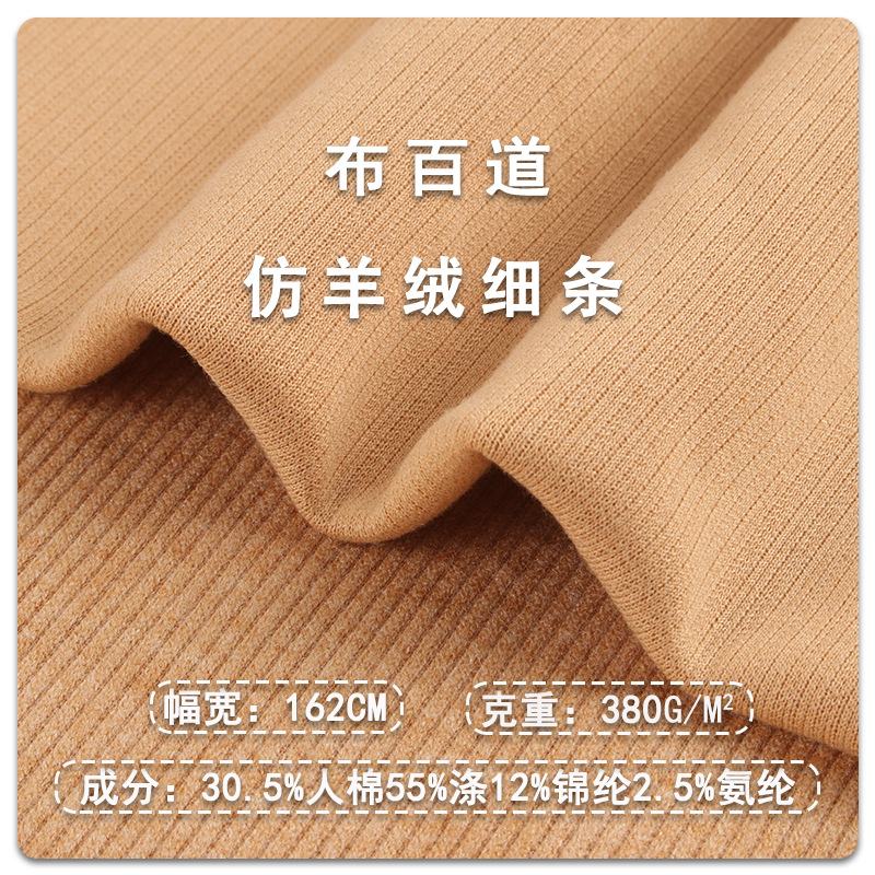 1*1银丝罗纹坑条300g锦纶人棉弹力保暖针织面料 随心裁打底罗纹布