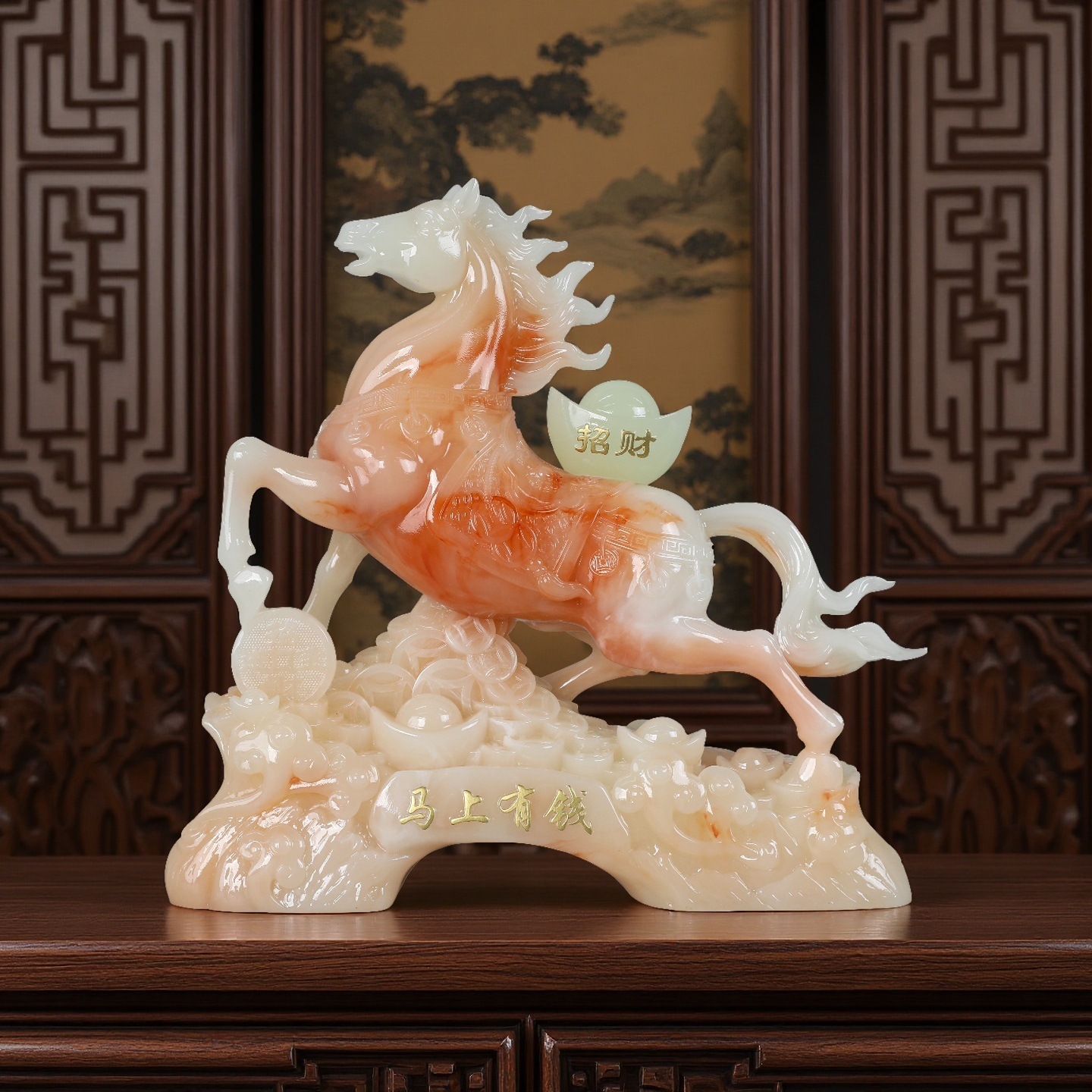 马到成功仿玉摆件新款开业送礼招财摆件玄关办公室商务开业乔迁礼