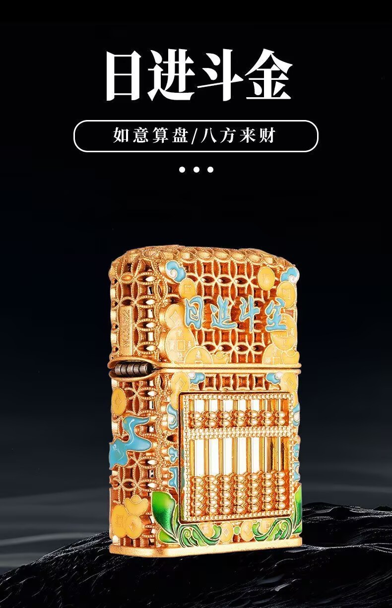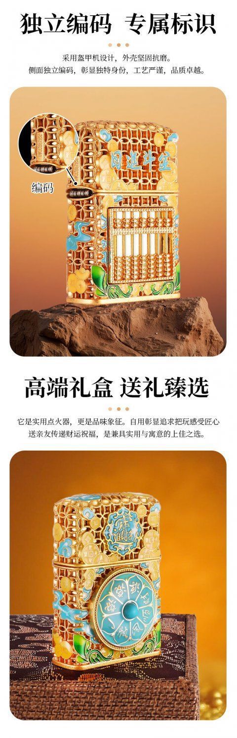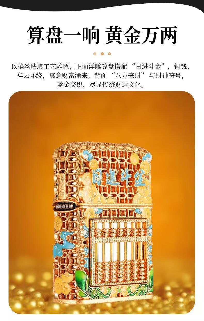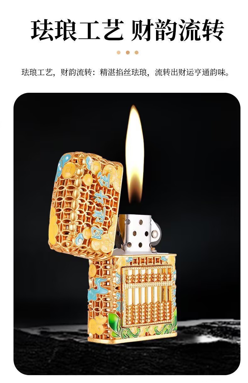Z2-2017黄金万两珐琅彩算盘个性夜光雕花收藏煤油防风打火机送礼