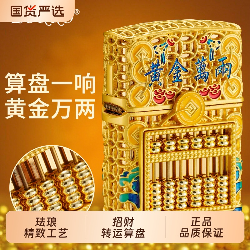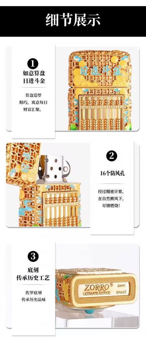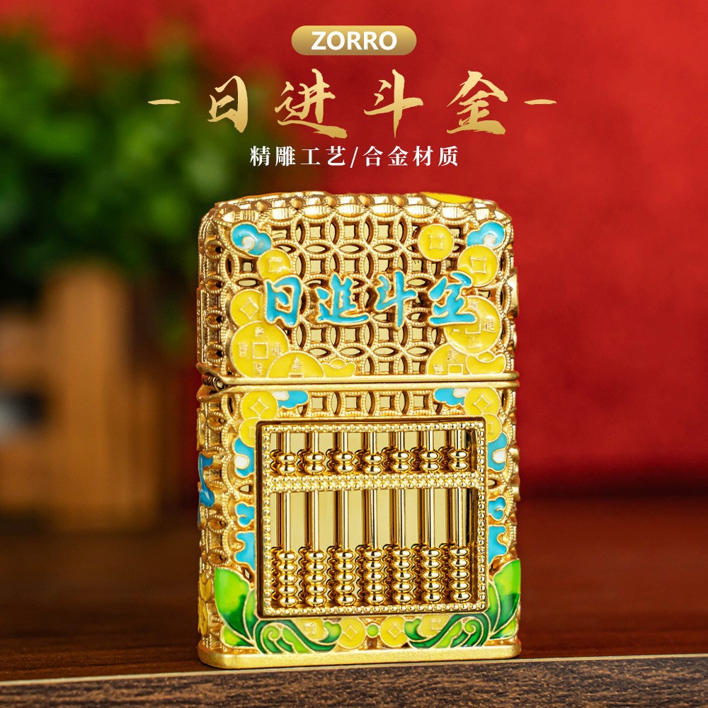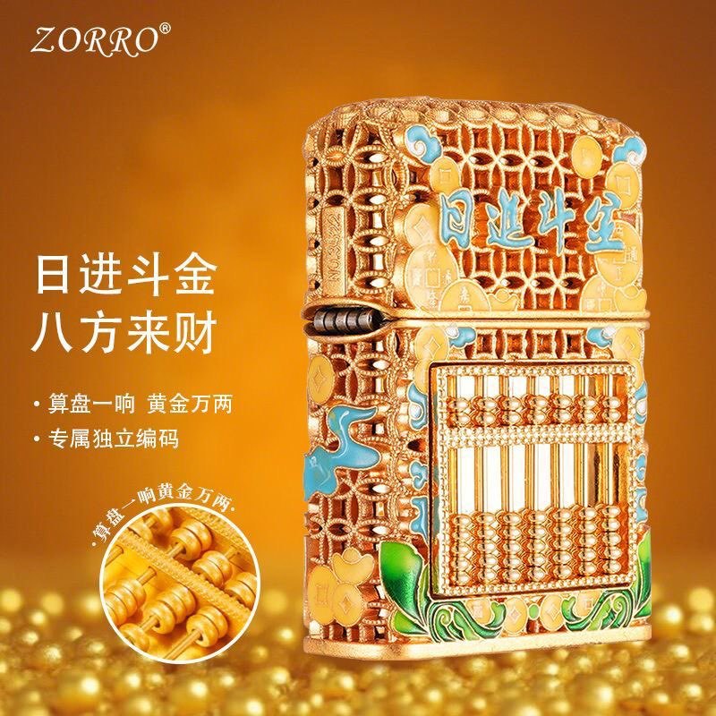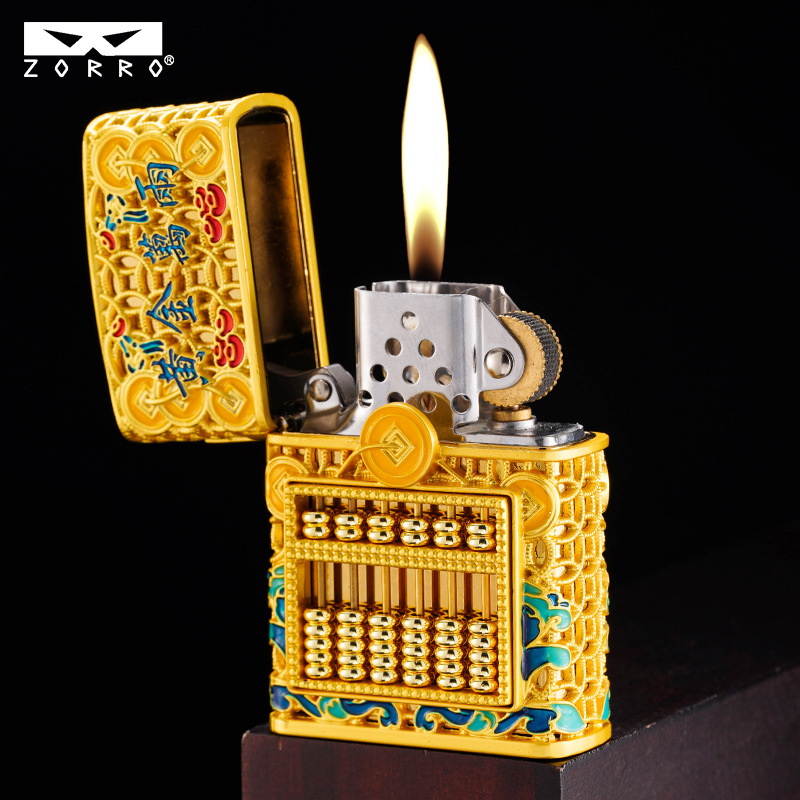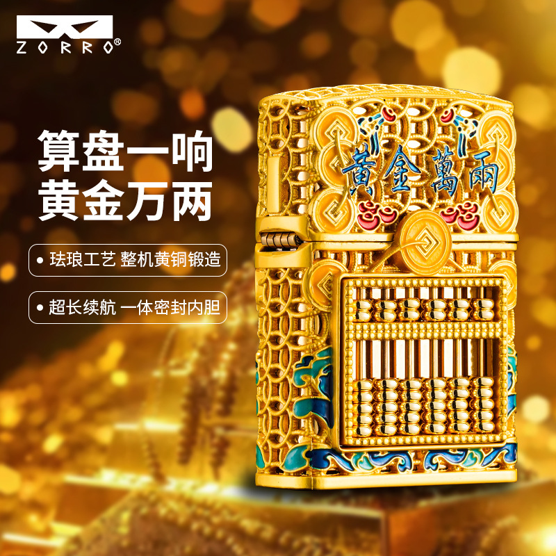 ZORRO佐罗二代黄金万两算盘珐琅夜光煤油打火机送男生礼物