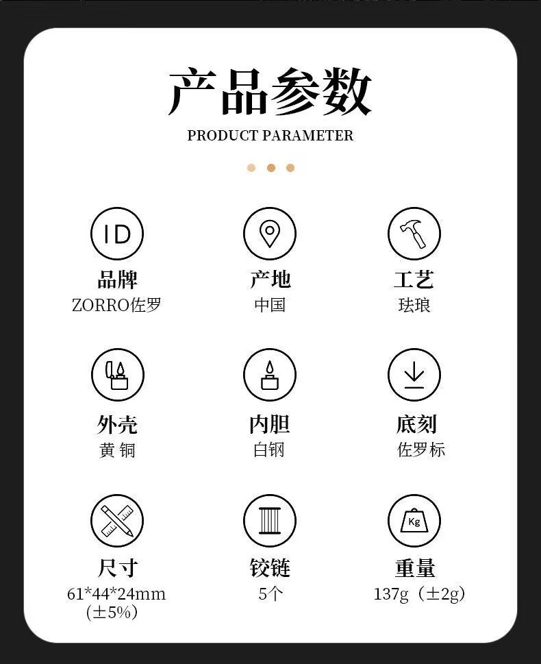 ZORRO佐罗打火机 煤油防风盔甲夜光掐丝珐琅彩日进斗金算盘盲盒礼