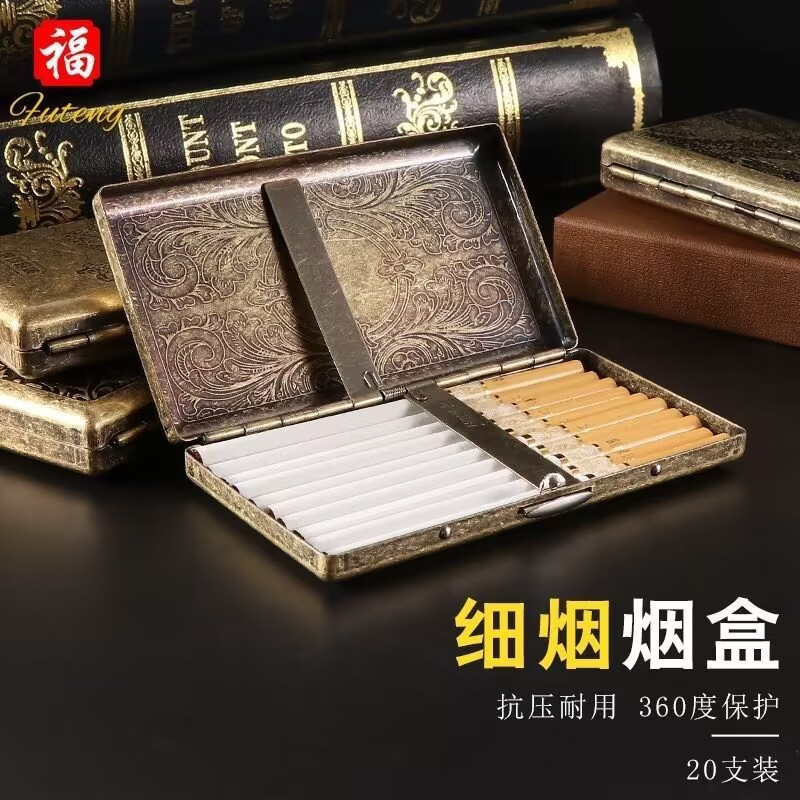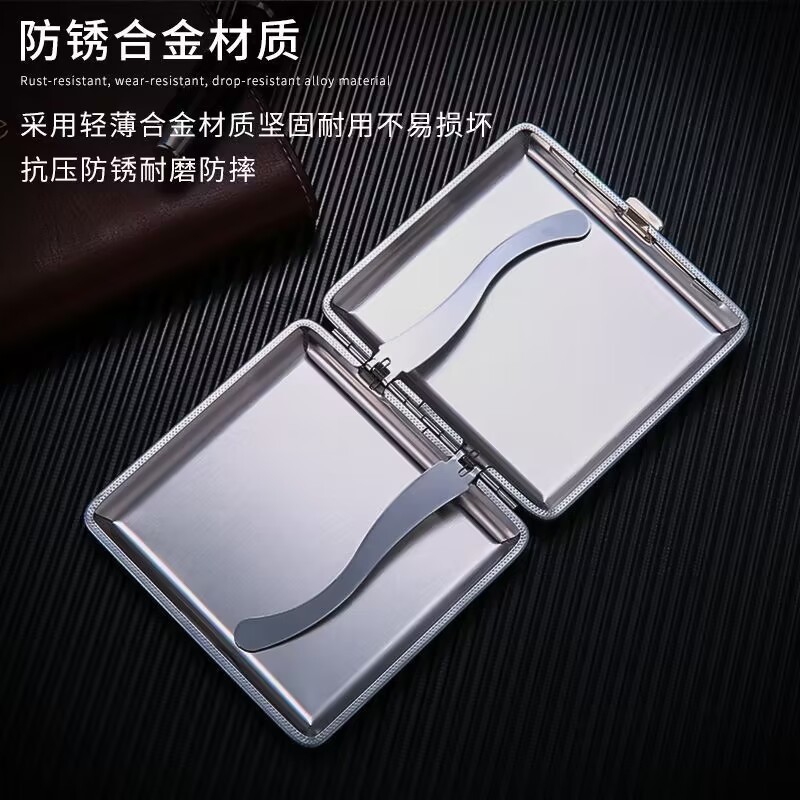 メーカー直販20本入り皮質鉄製タバコケース超薄型携帯防圧防湿防汗8.0mmサイズ卸売り