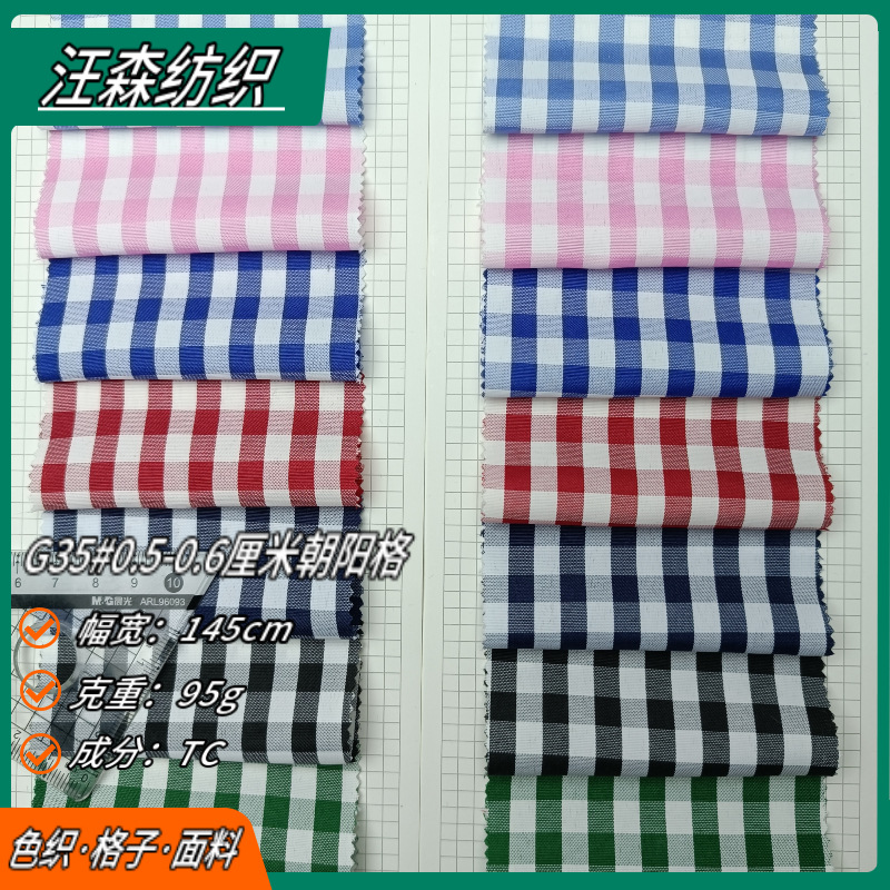 0.5cm0.6cm色織朝陽格子布生地ポリエステル0.5cm0.6cm格子シャツ裏地生地