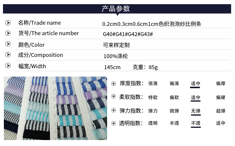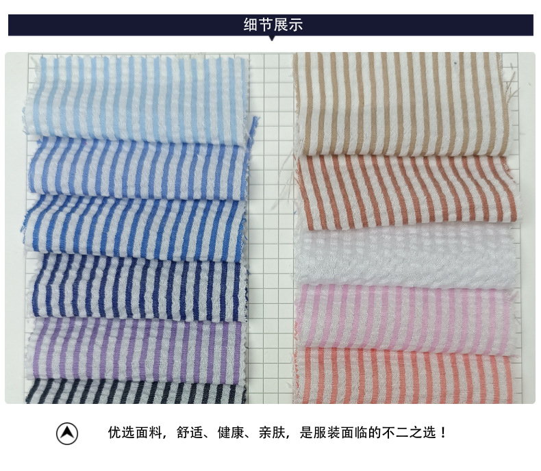 泡泡纱比例条纹布料不同宽度2mm3mm6mm10mm色织全涤泡泡条子面料