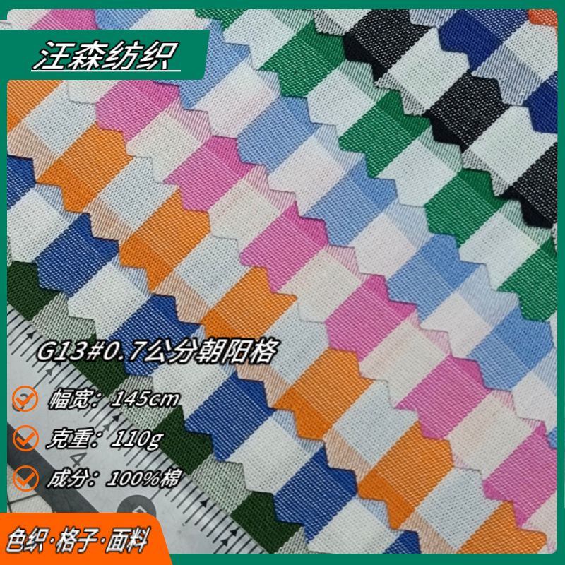 綿100% 0.7cm色織り朝陽格子生地 純綿7mm格子布 ワンピース シャツ生地 布地
